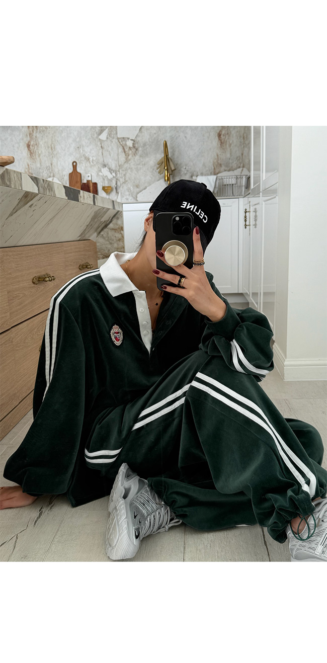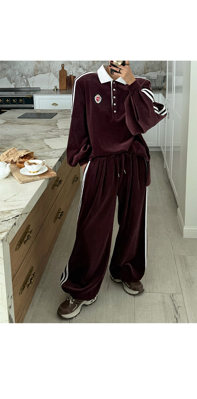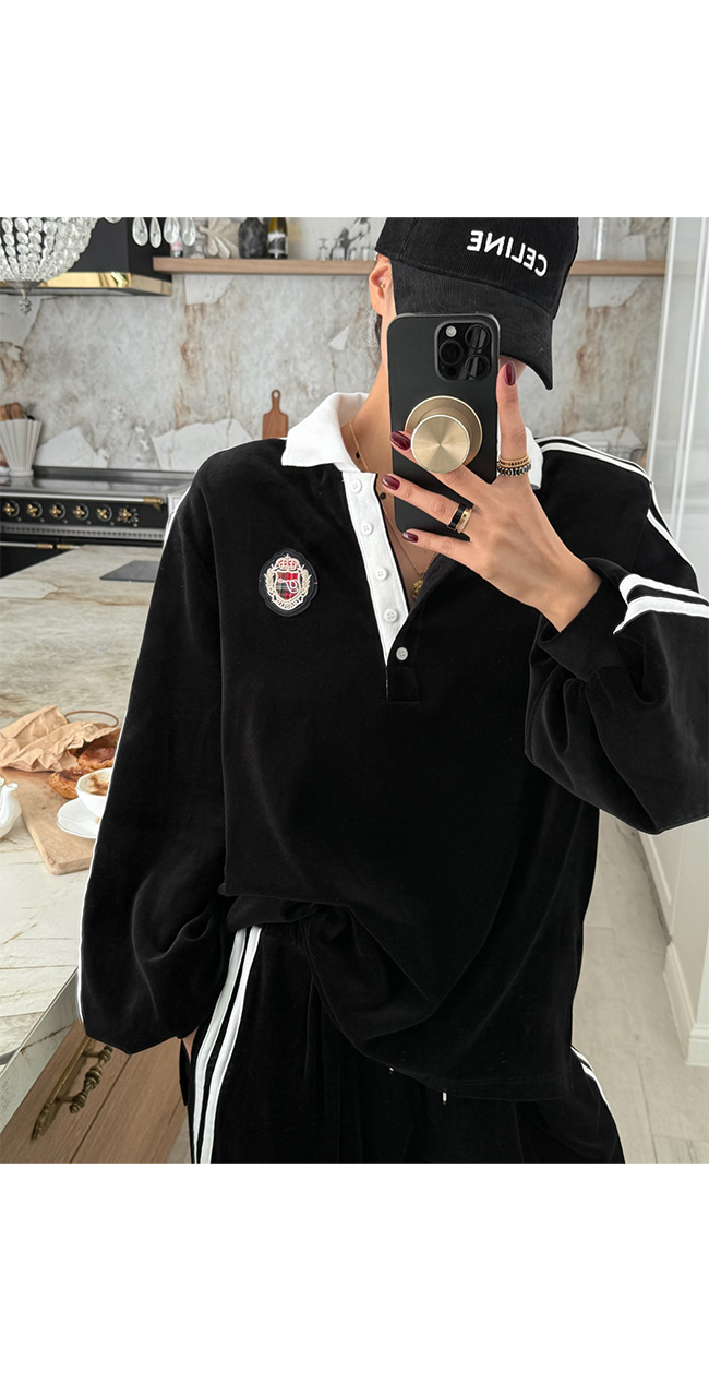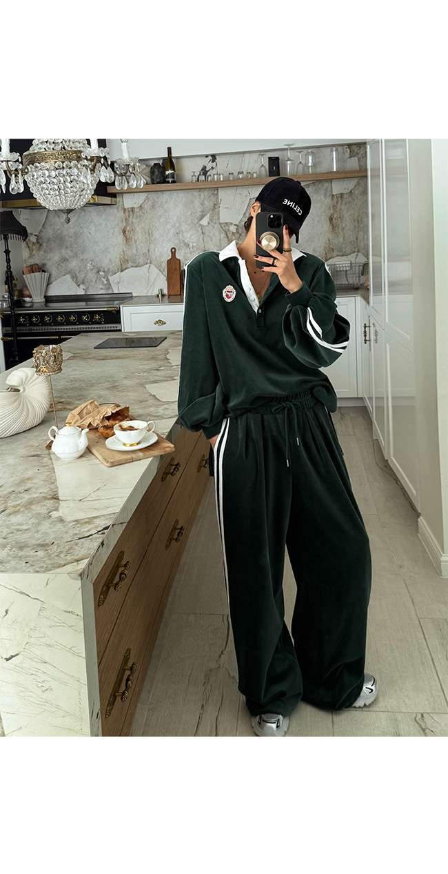 같은 소재의 벨벳 카라티와 셋업으로 매치하면