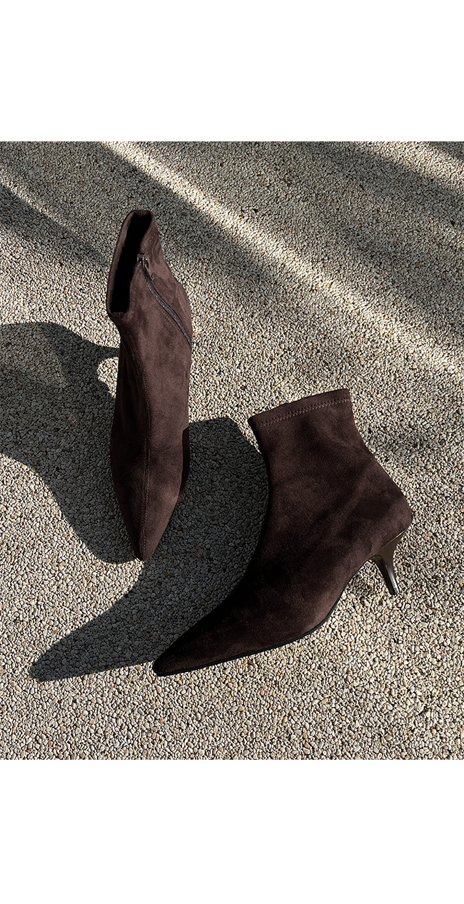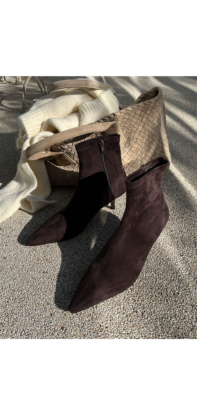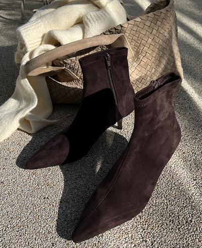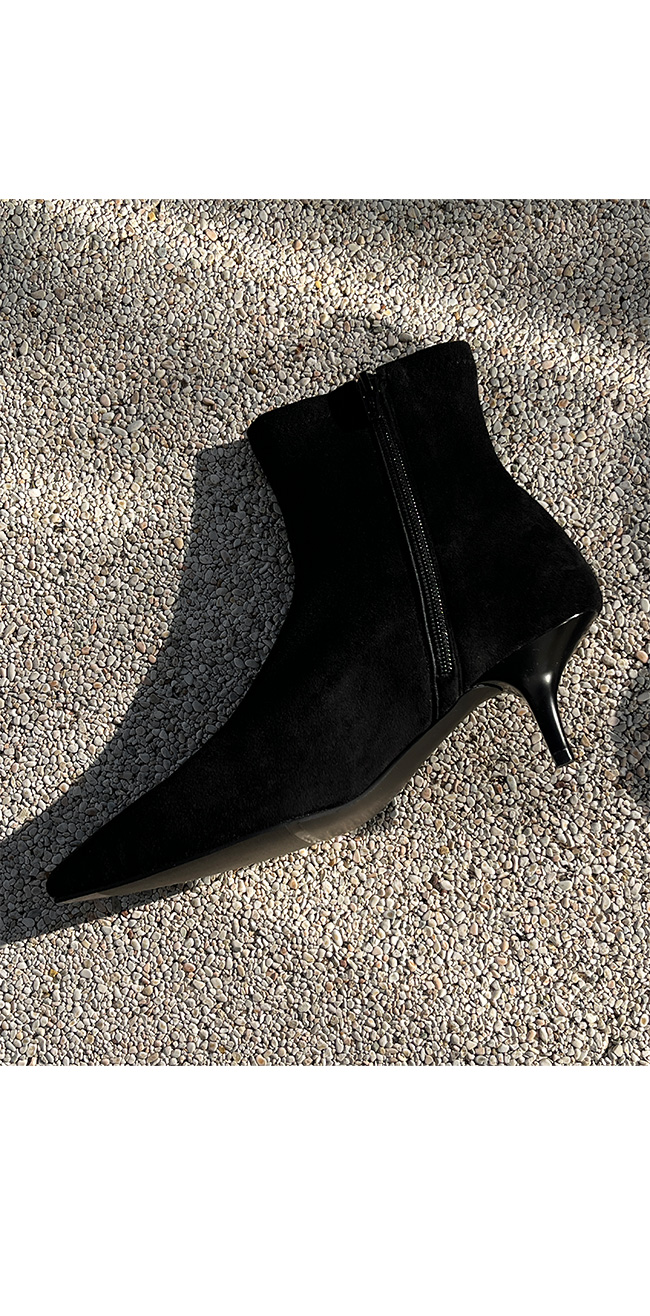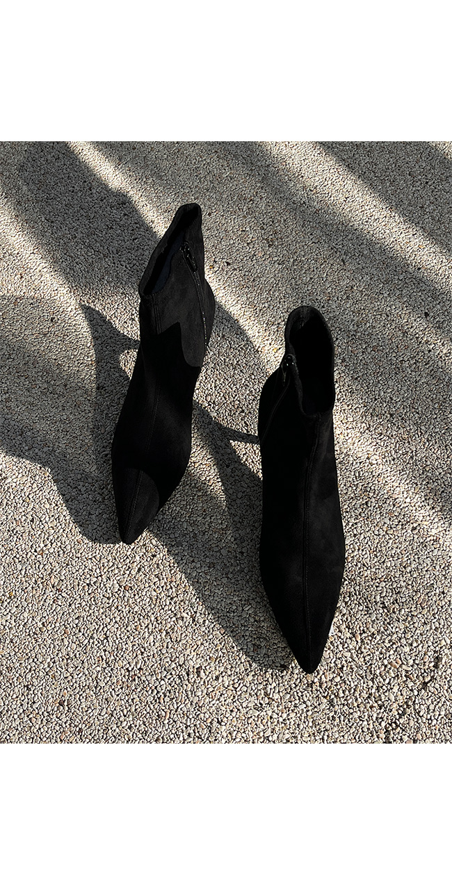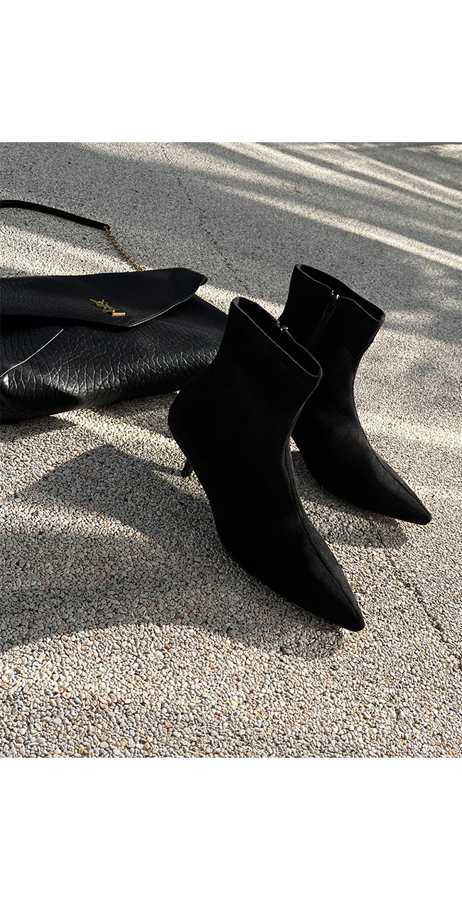 -세련된 라인의 스웨이드 슬림 앵클 부츠