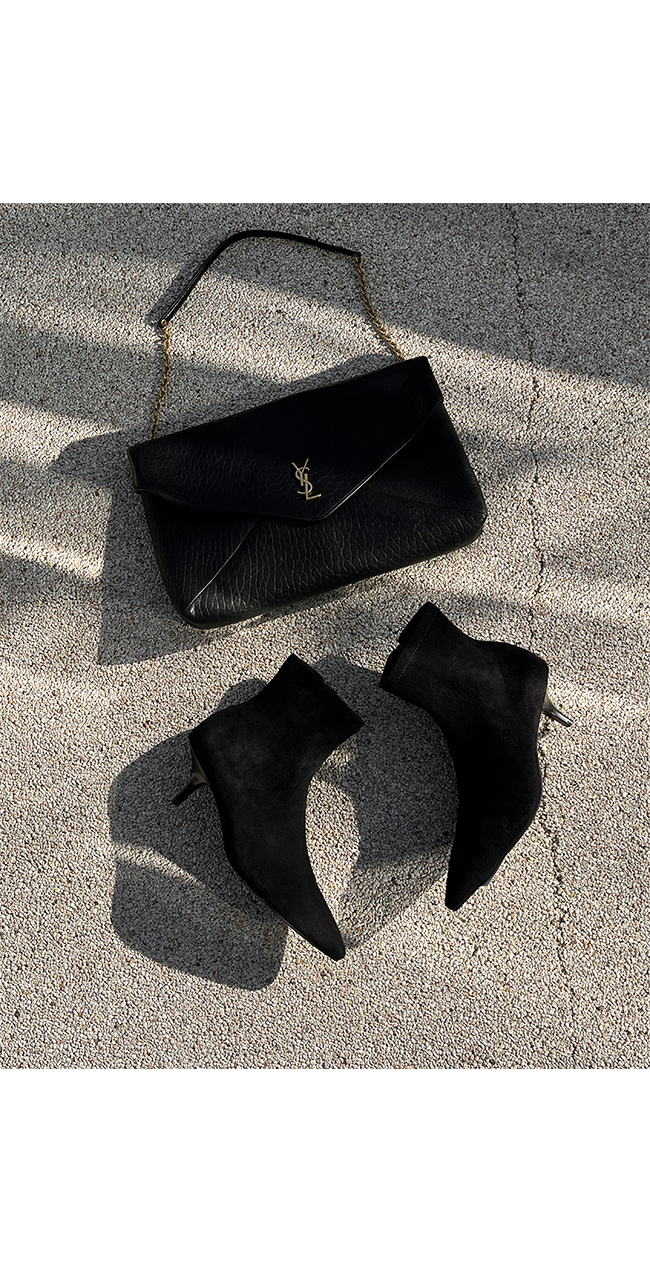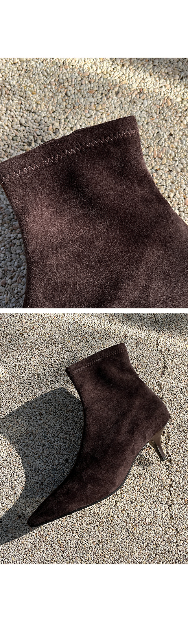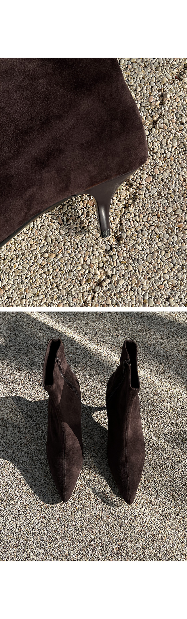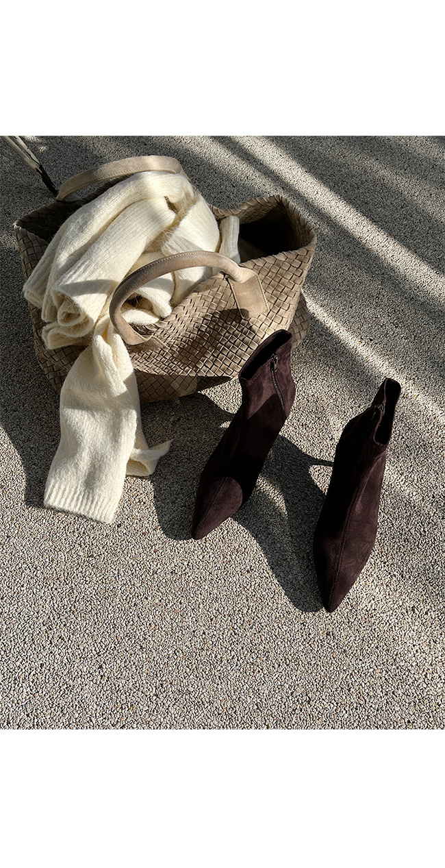 -세련된 라인의 스웨이드 슬림 앵클 부츠
