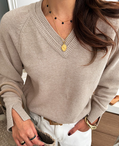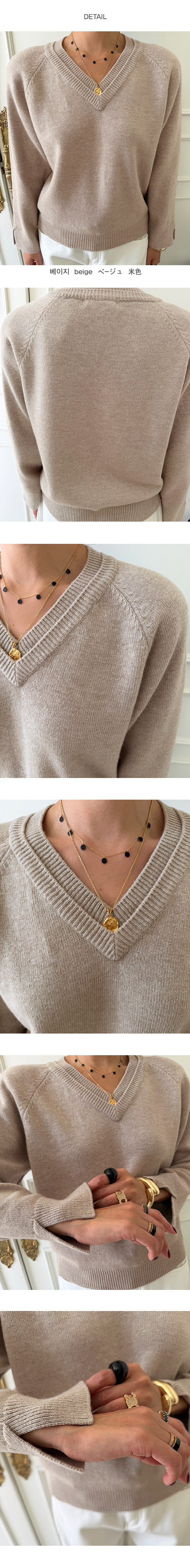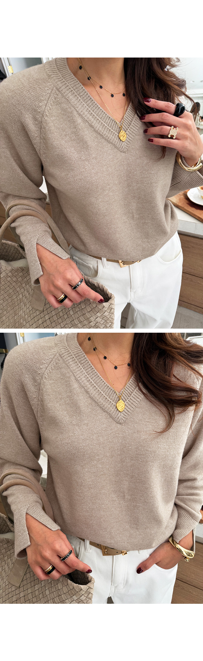 심플하면서도 우아한 분위기의 브이넥 니트,