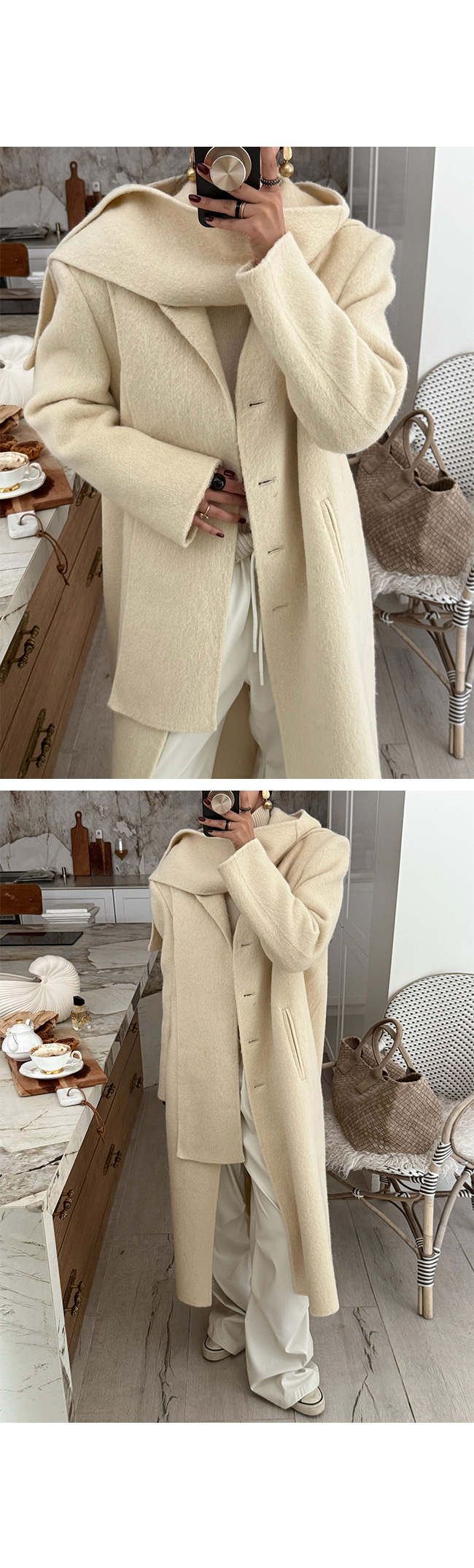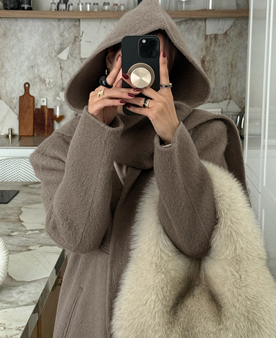 추운 날에는 후드처럼 얼굴 라인을 감싸