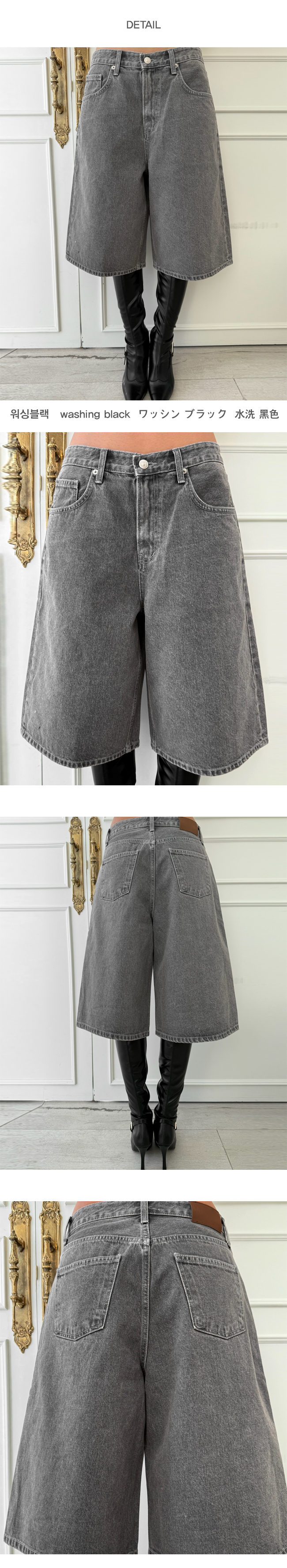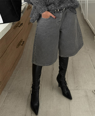 와이드 데님 하프 팬츠 아이템입니다.