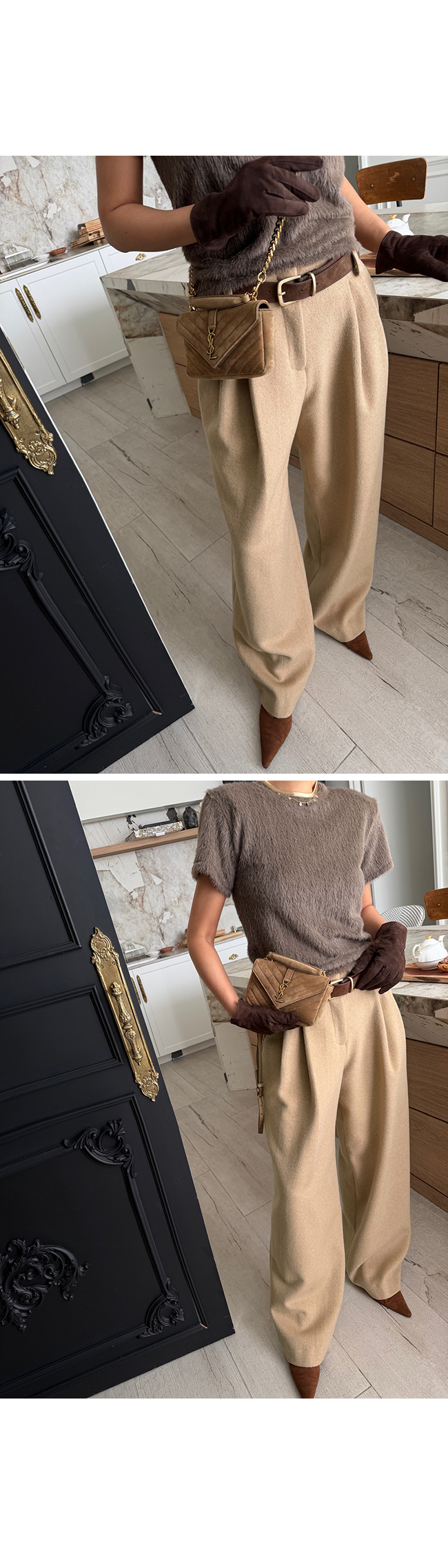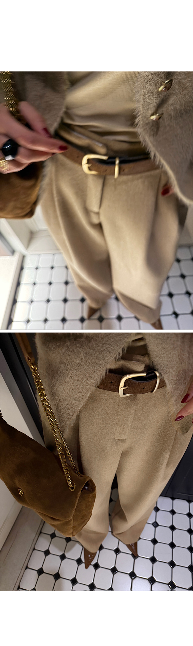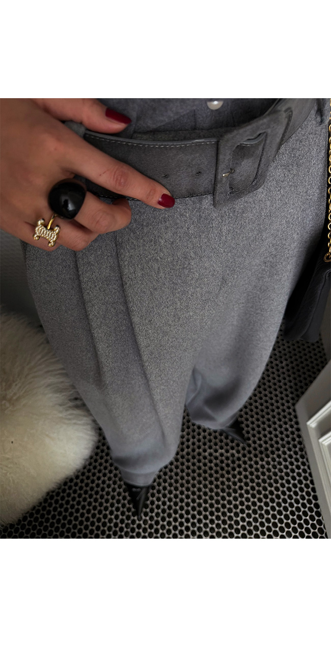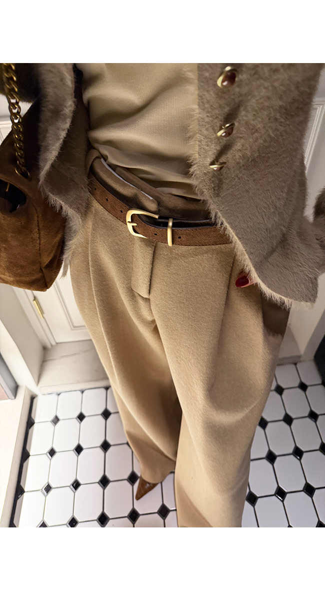 허리 부분은 벨트 고리가 더해진 단정한 디자인으로