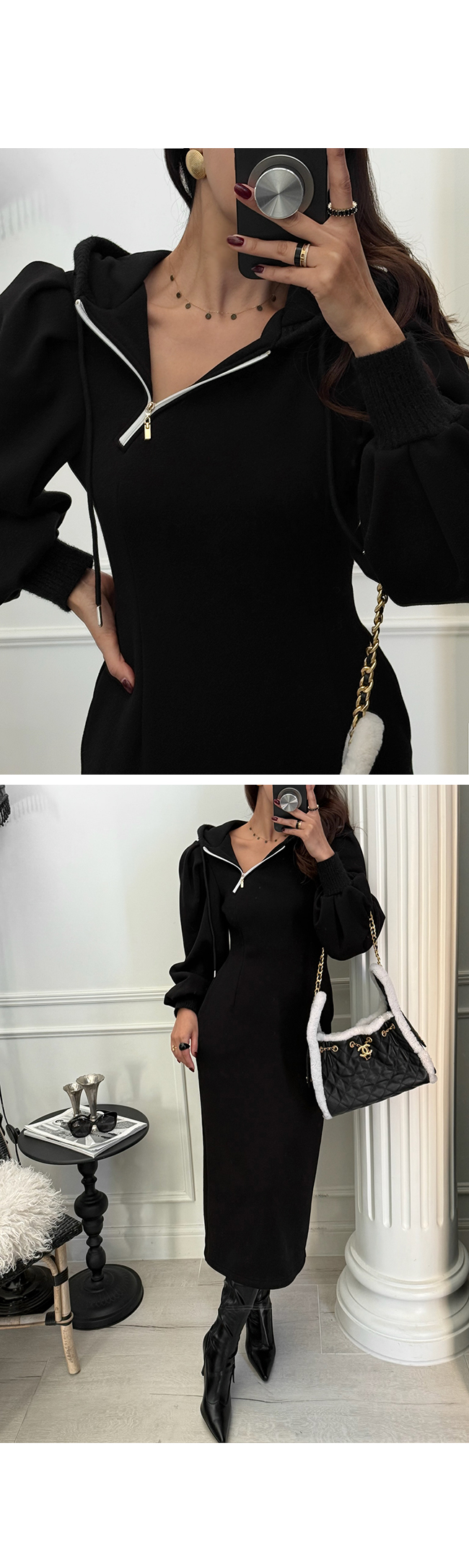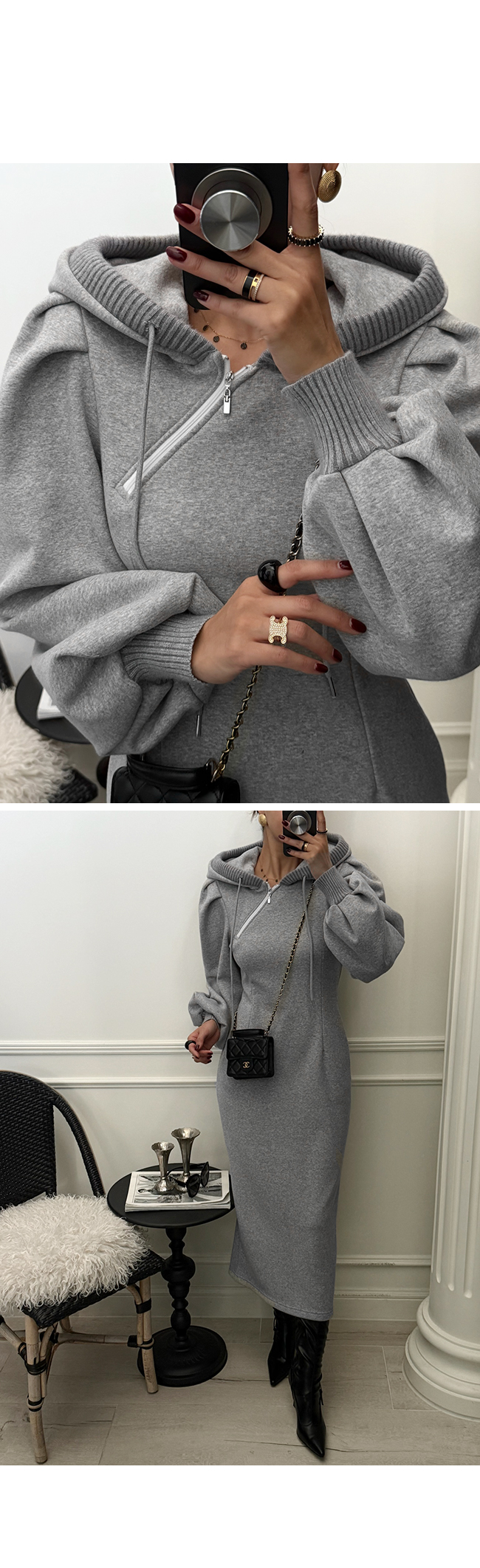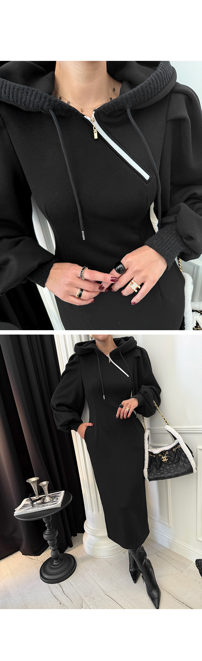사선 지퍼 디테일이 더해진 후드 디자인으로