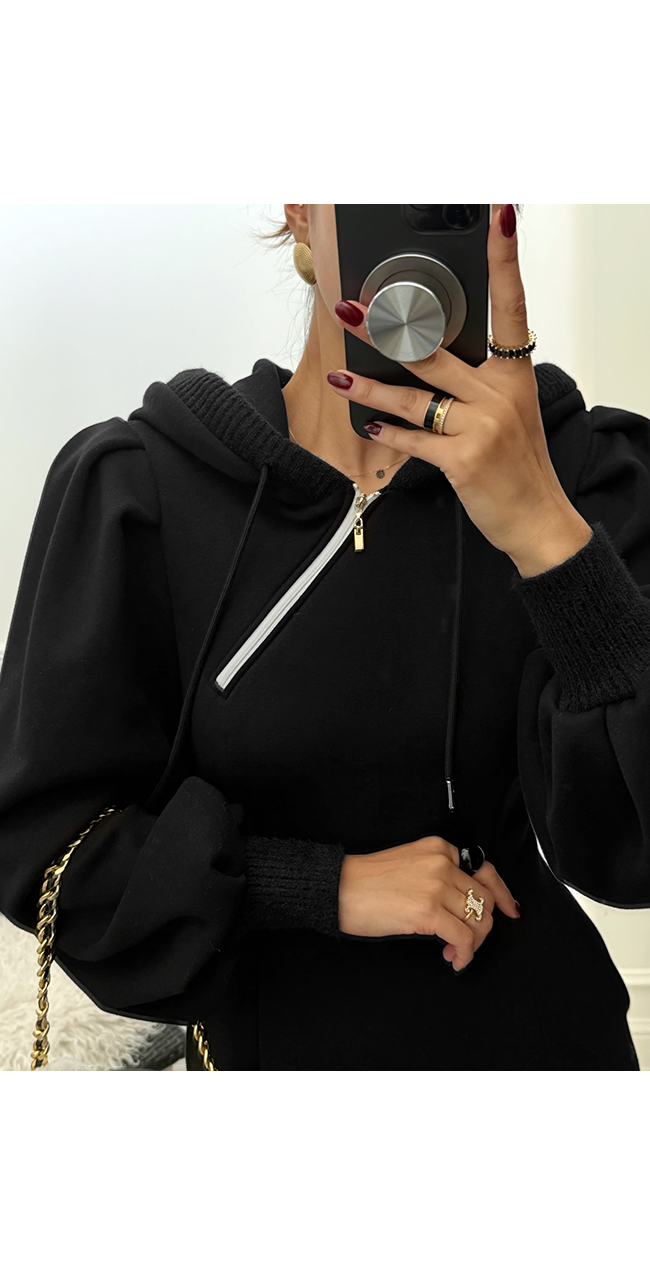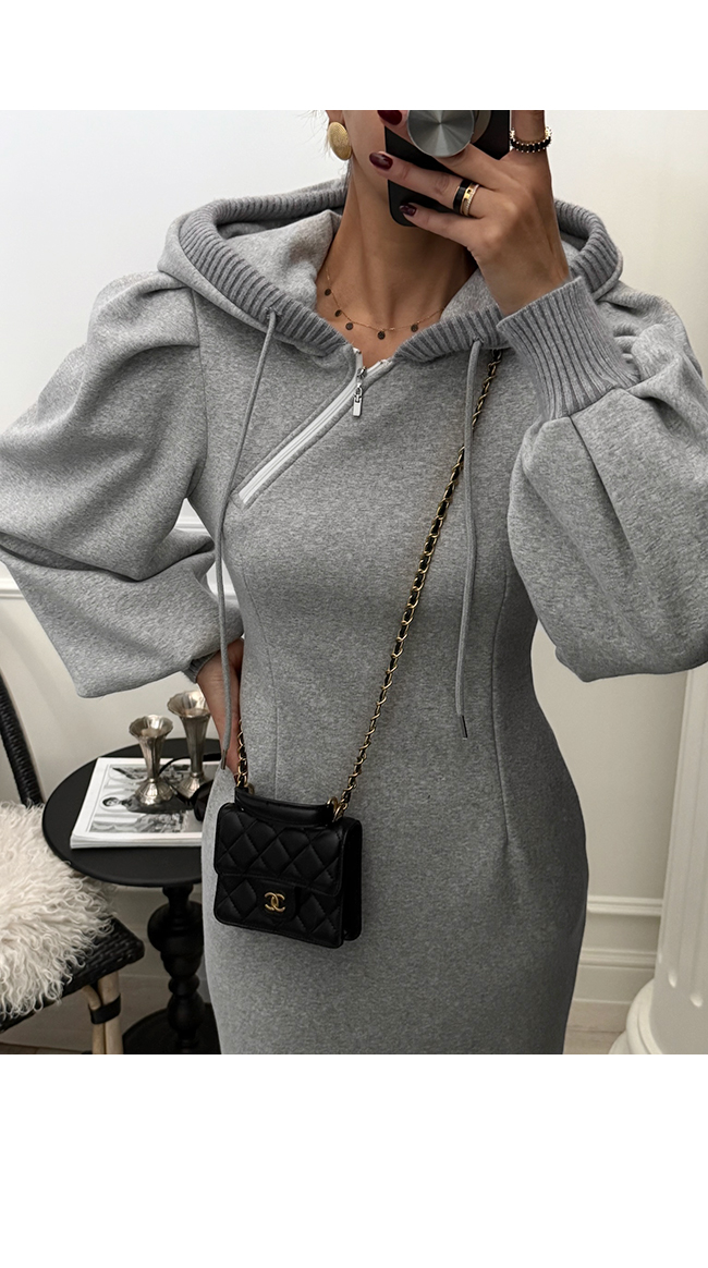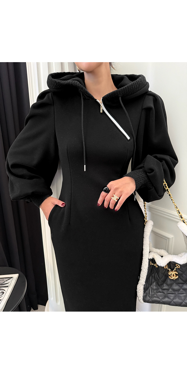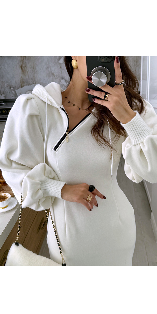 사선 지퍼 디테일이 더해진 후드 디자인으로