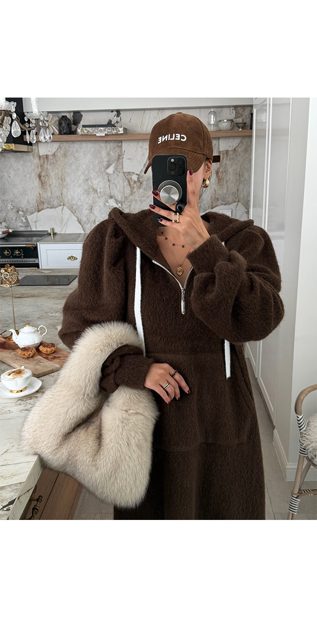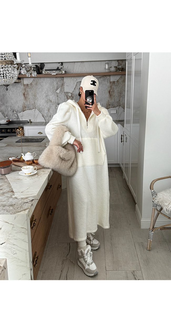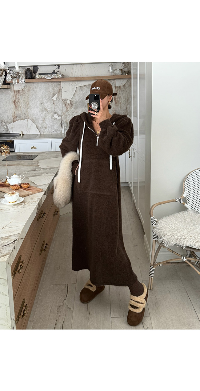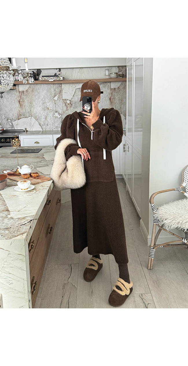 줄로그만의 감성 가득한 반집업 후드 원피스, 적극 추천드려요.