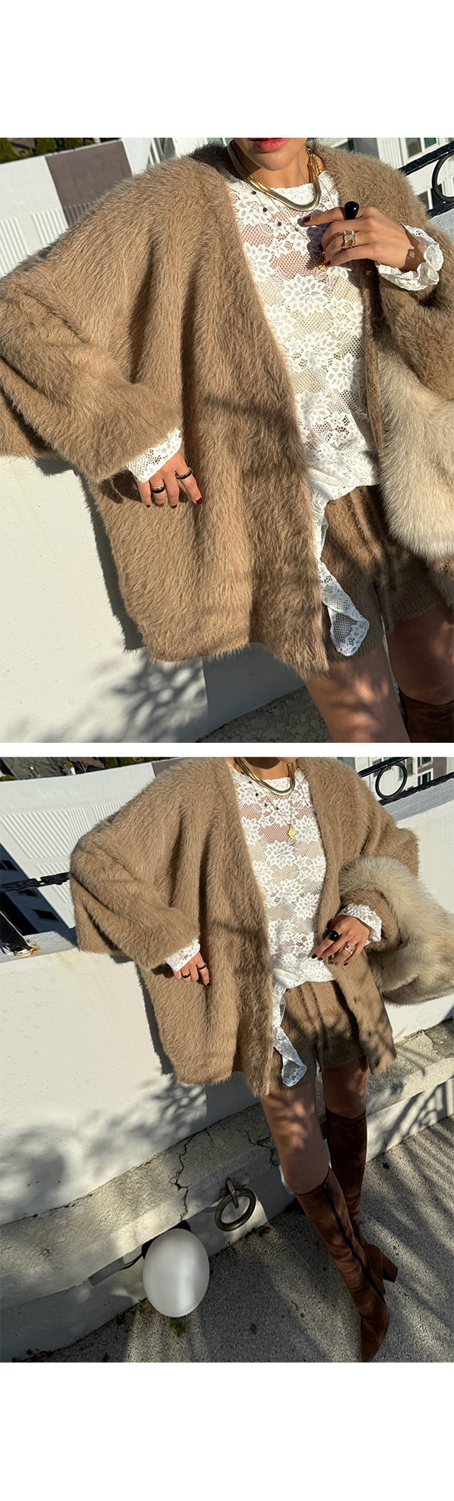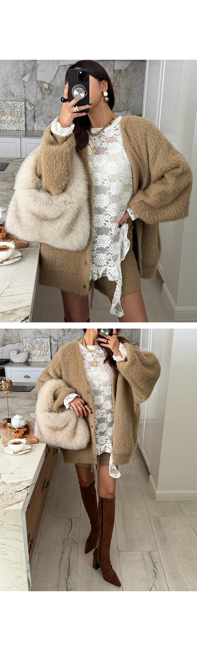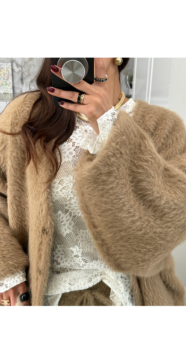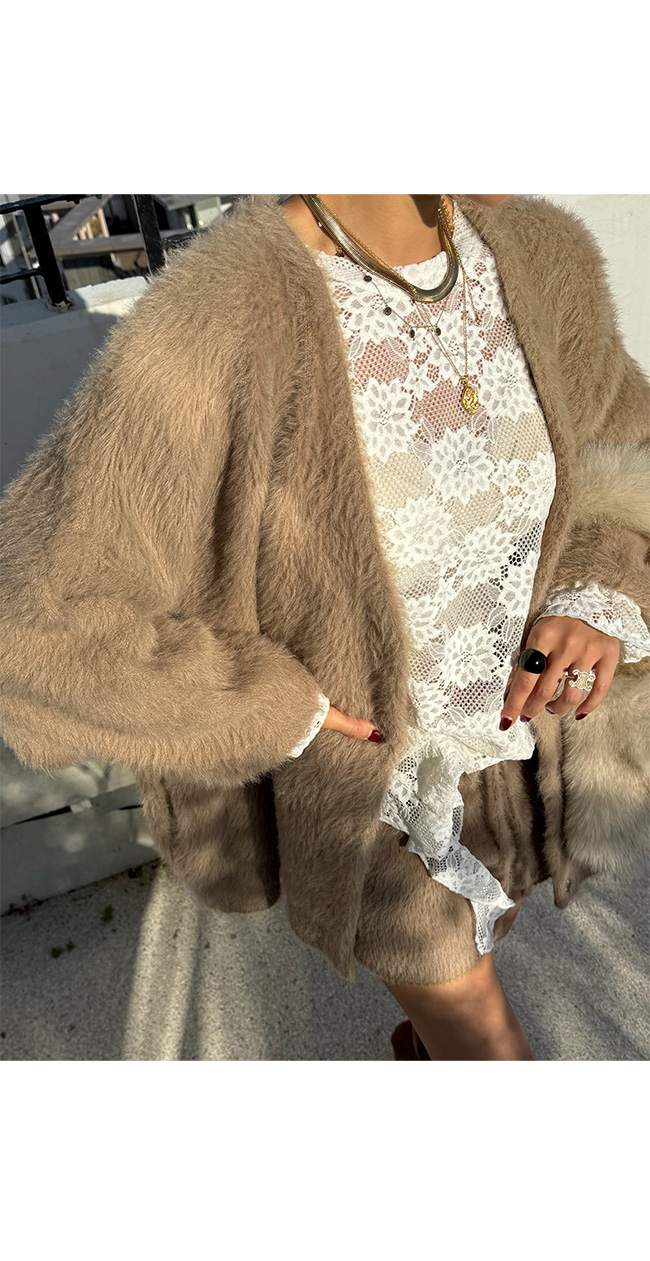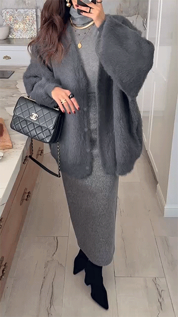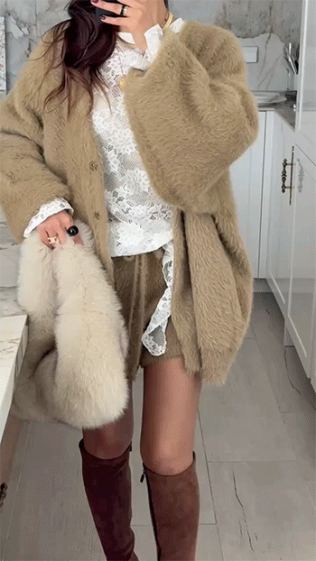 고급스러운 무드의 퍼 니트 가디건입니다.