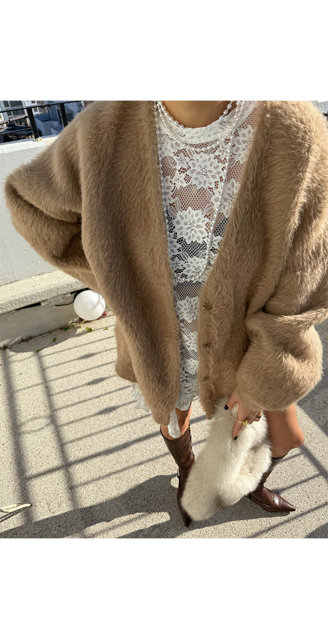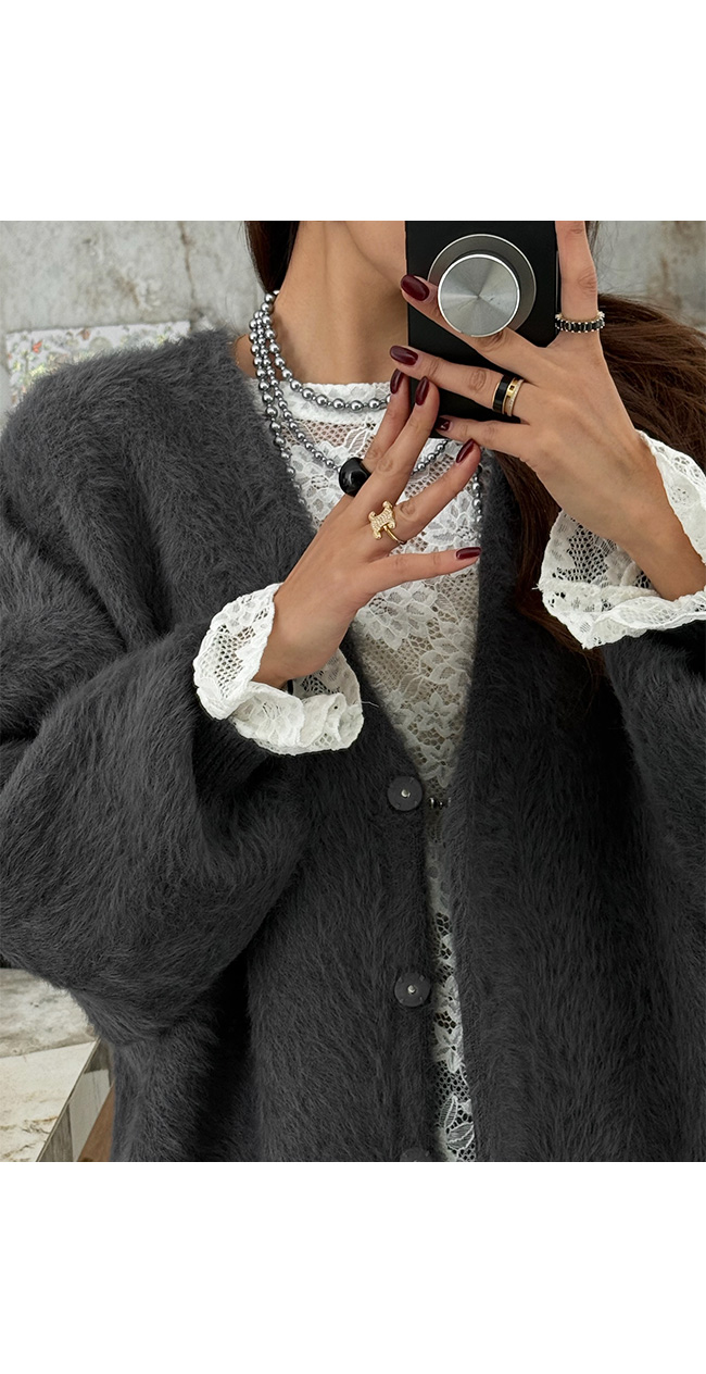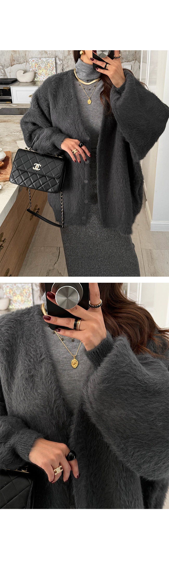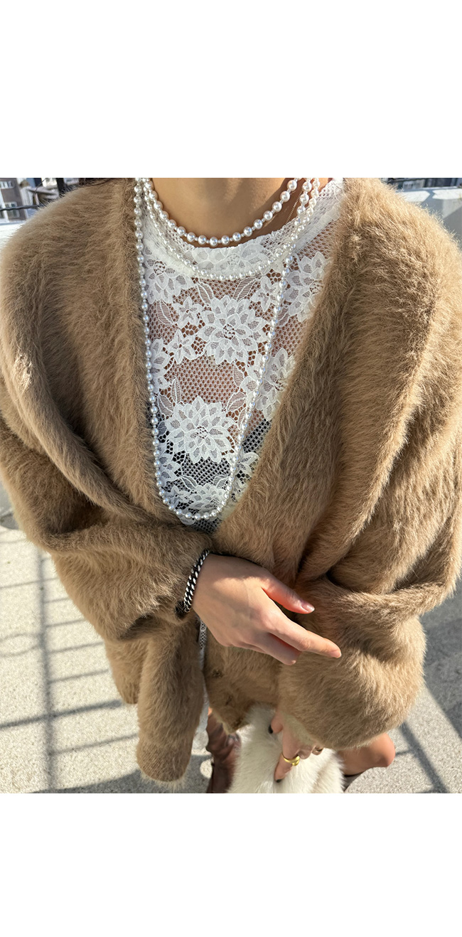고급스러운 무드의 퍼 니트 가디건입니다.