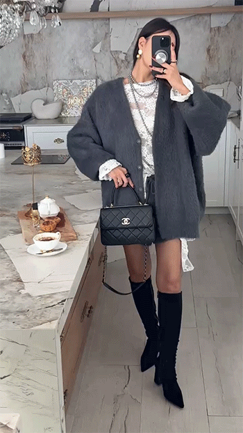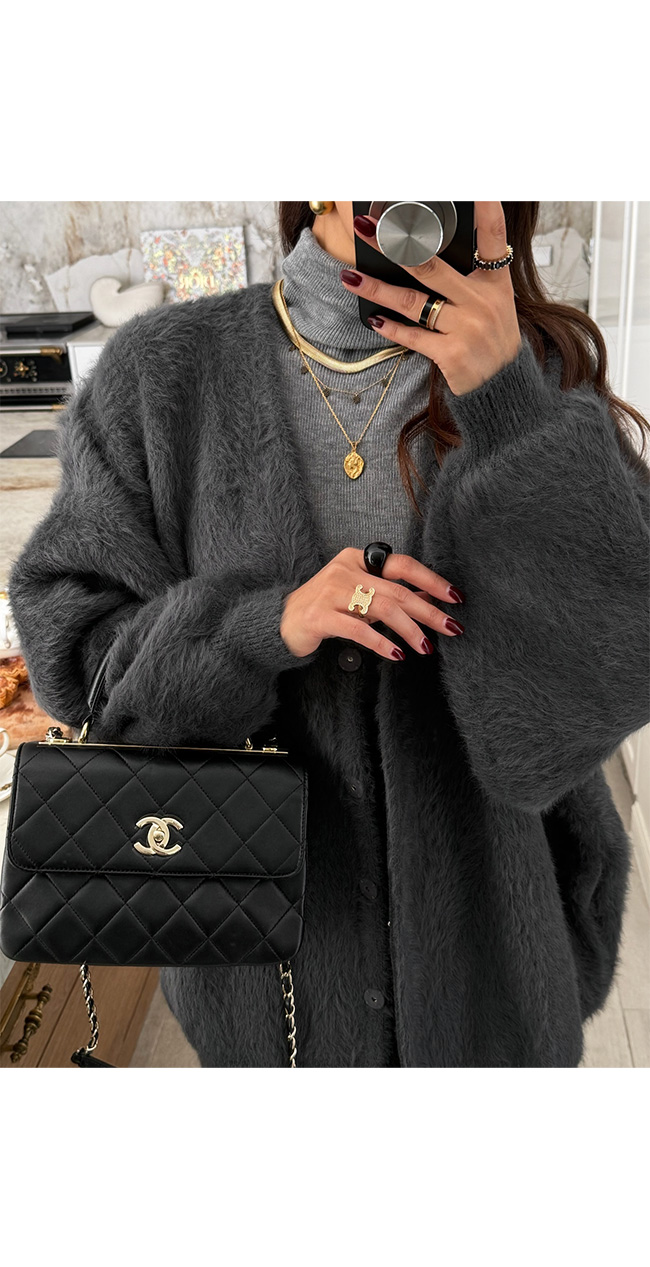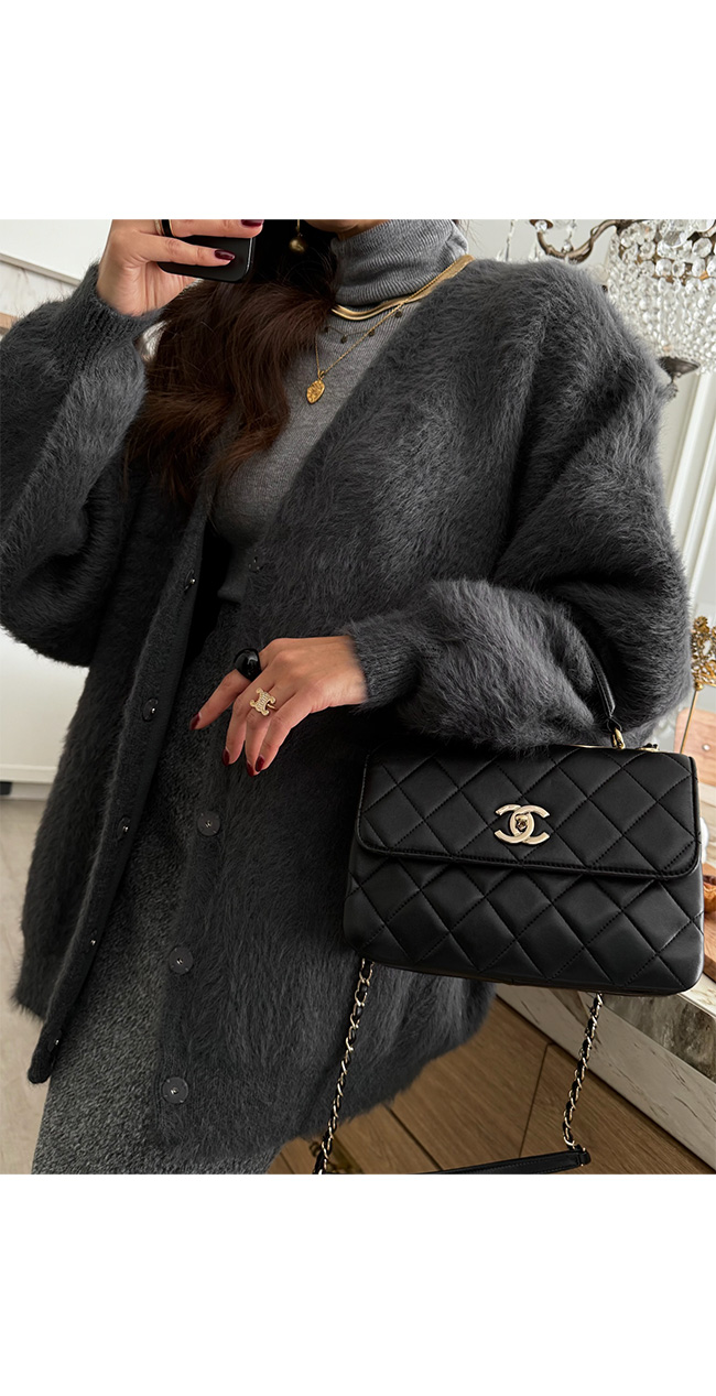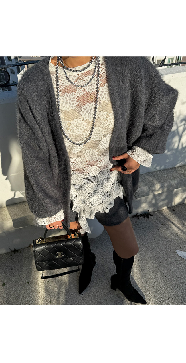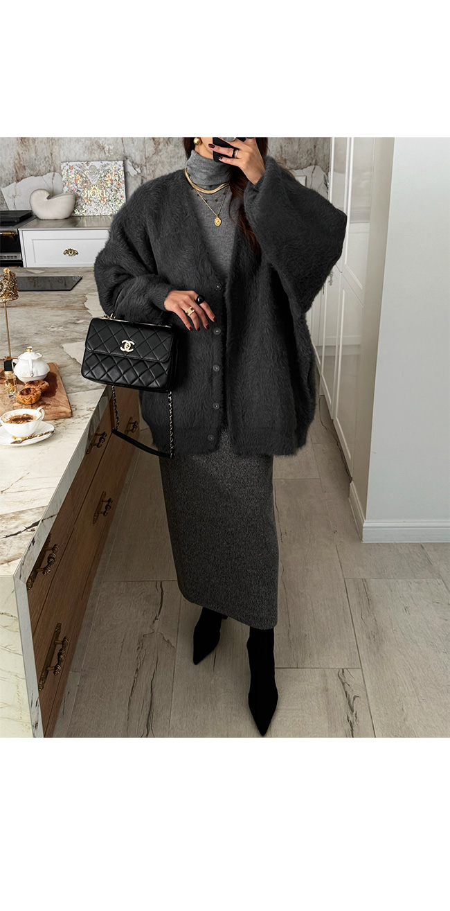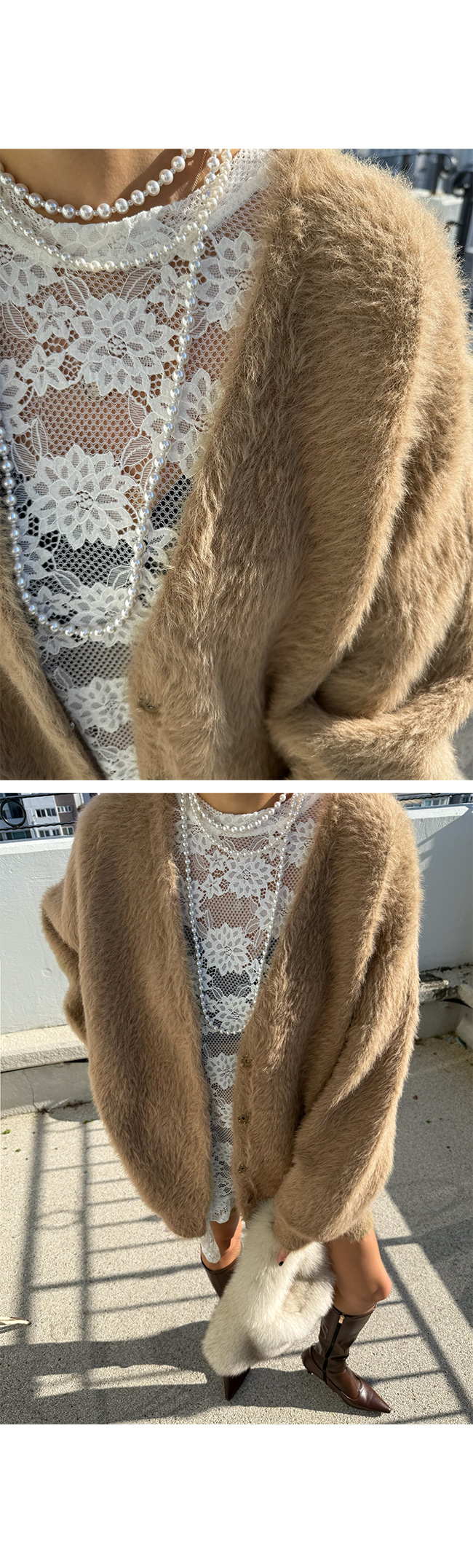 고급스러운 무드의 퍼 니트 가디건입니다.