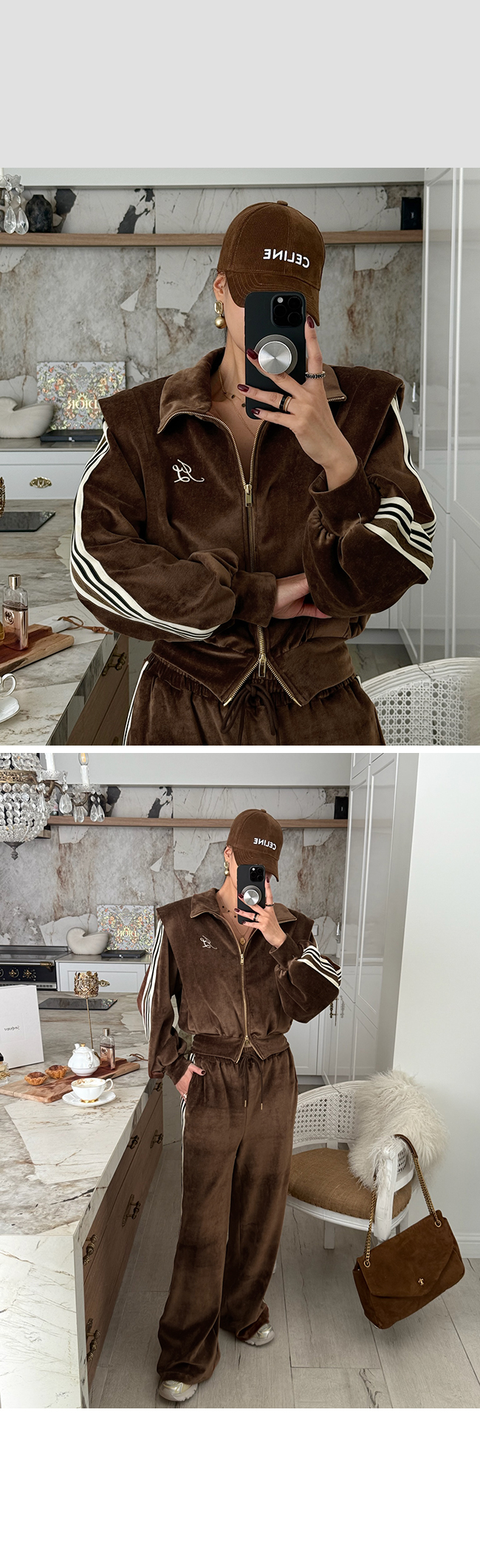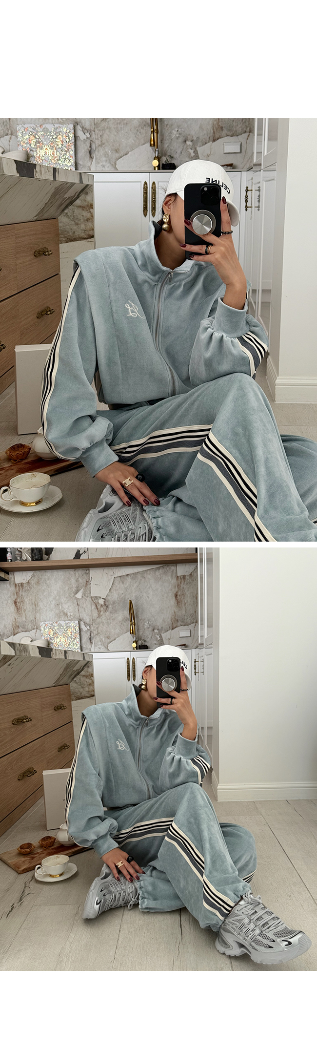 같은 소재의 투웨이 하이넥 집업과 셋업으로 착용 시