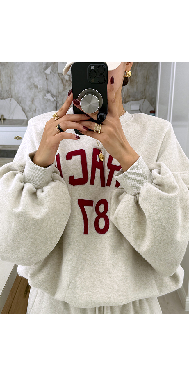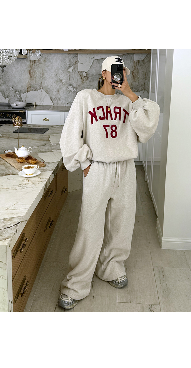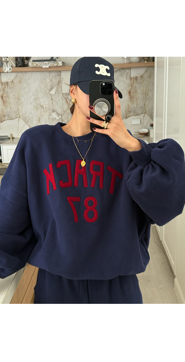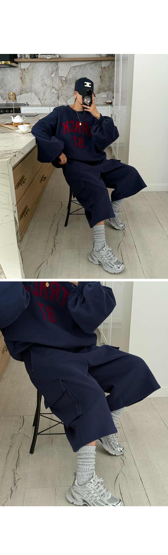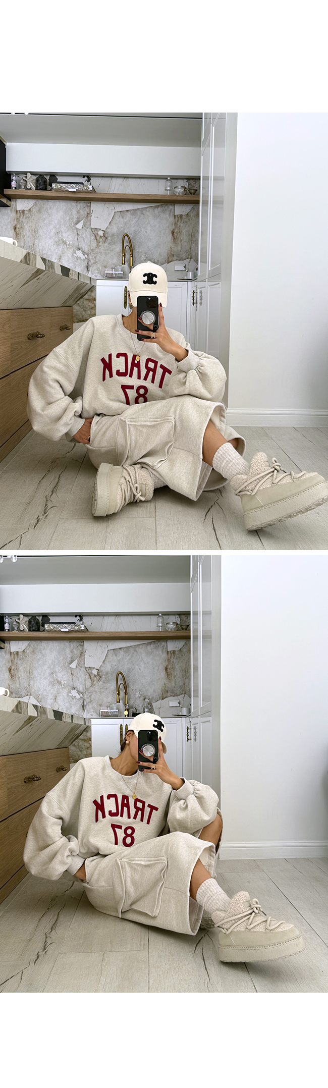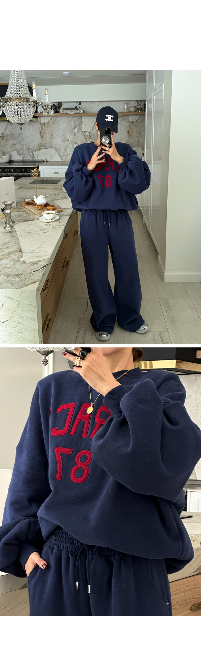 가장 큰 포인트는 전면의 입체 자수 레터링 디테일이에요.
