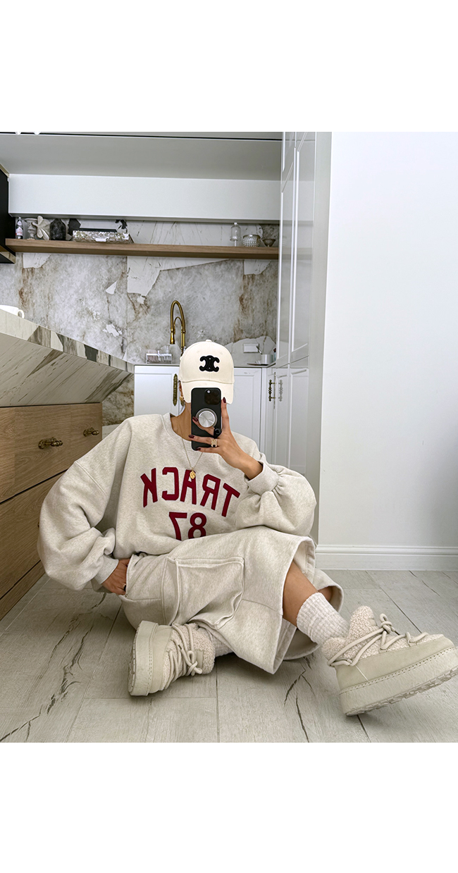 같은 톤의 맨투맨과 세트처럼 매치하면 더욱 멋스럽고,