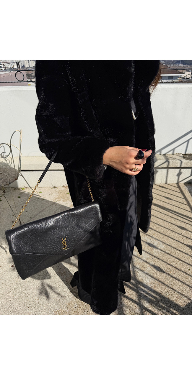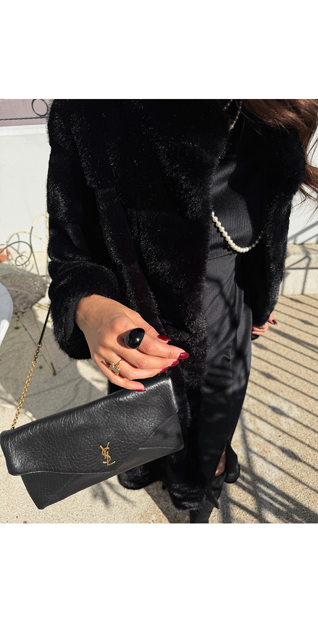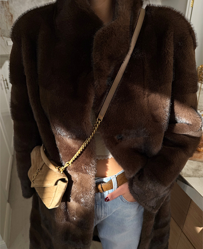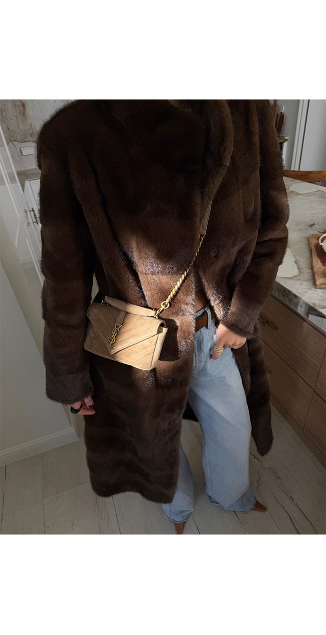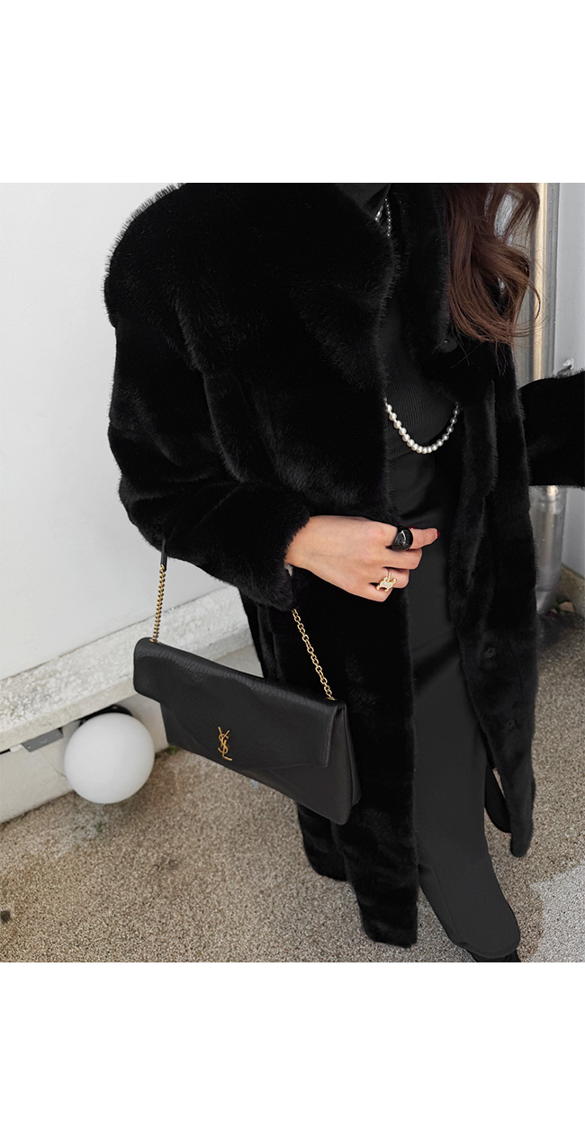 룩을 한 단계 업그레이드해 주는 퍼 롱코트.