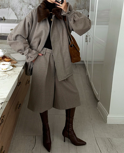 겨울 시즌 감각적인 투피스 룩이 완성되고,