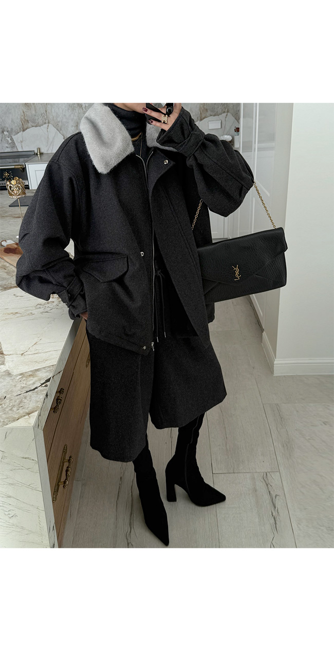 같은 소재의 퍼카라 오버핏 점퍼와 함께 연출하면