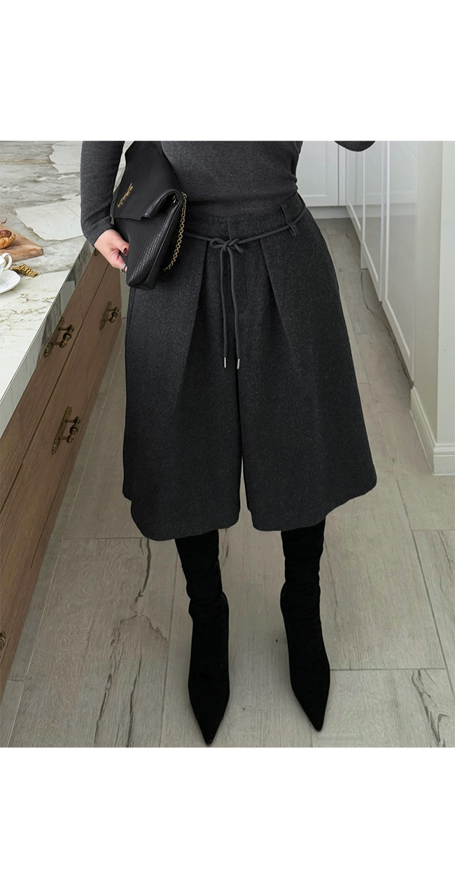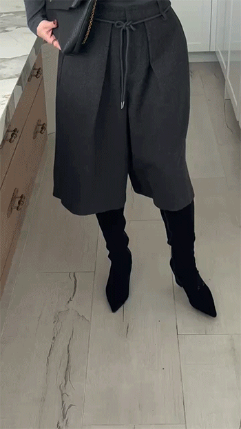프런트의 깊은 핀턱이 팬츠의 볼륨감을 살리면서
