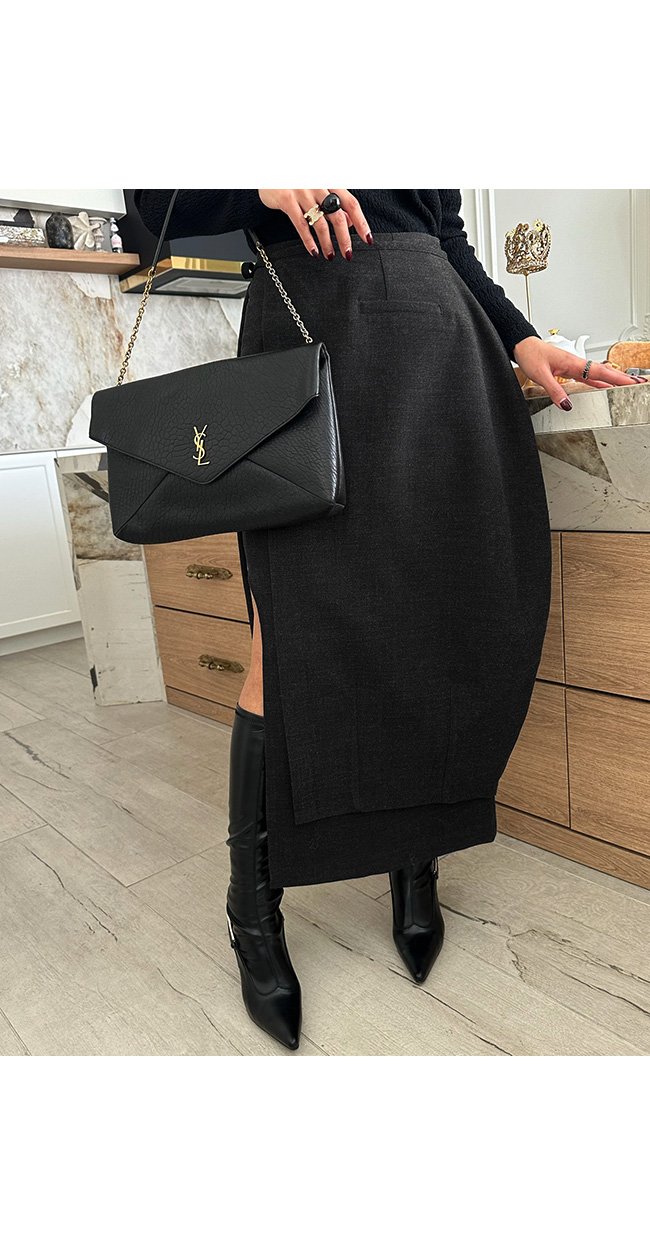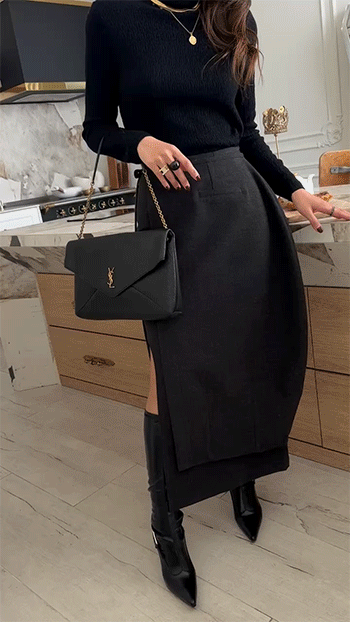 슬릿이 깊게 들어가 있어 부츠나 힐과 매치하면