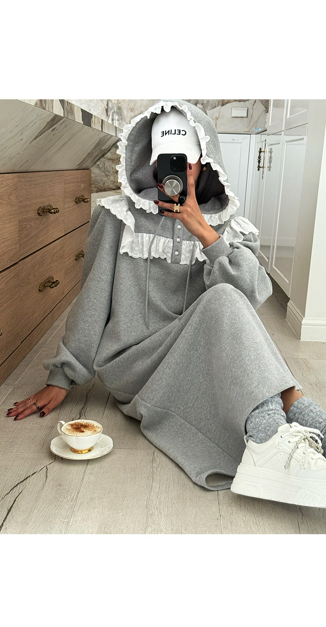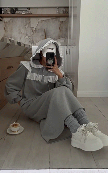 후드를 썼을 때도 자연스럽게 프릴이 얼굴을 감싸줘