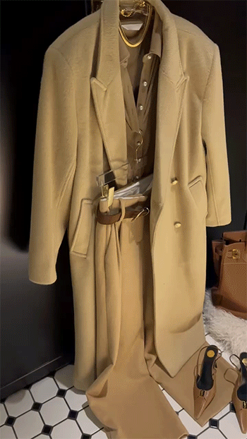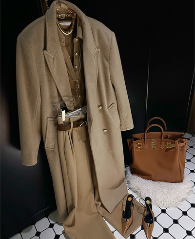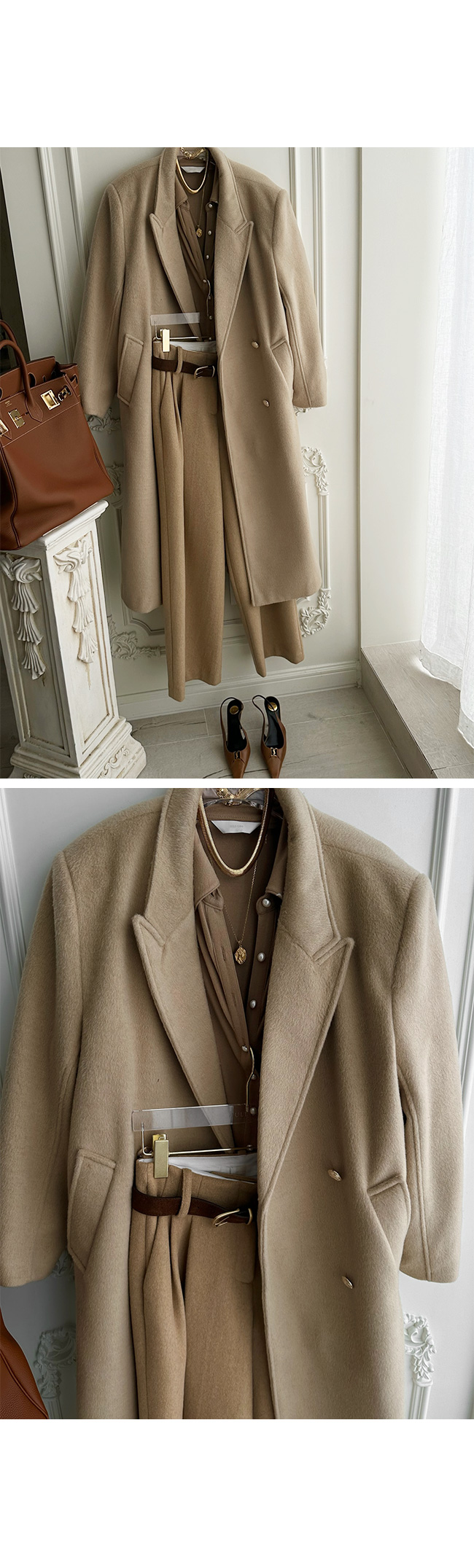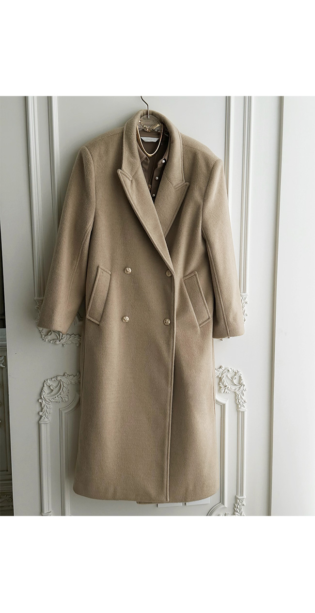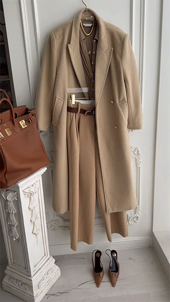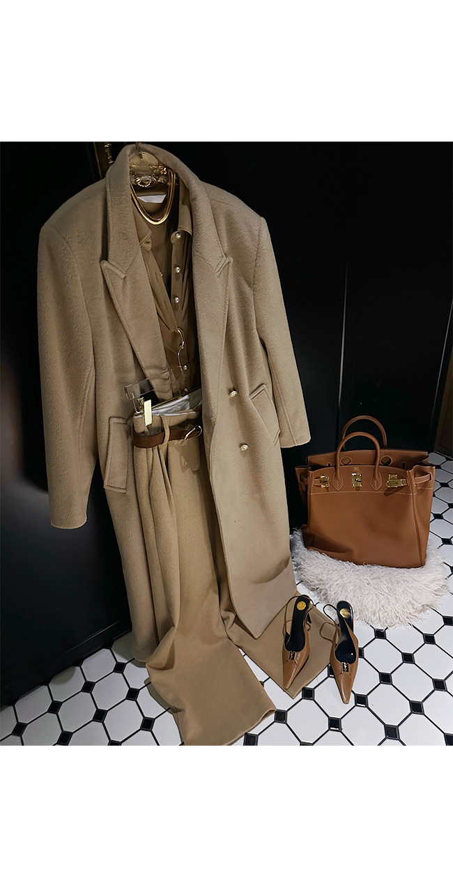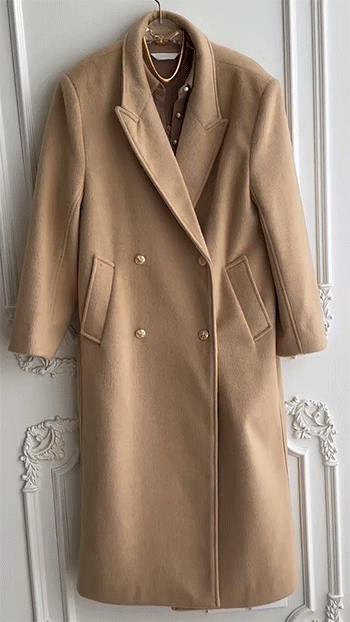 한눈에 봐도 고급스러운 결감이 느껴지는 코트예요.