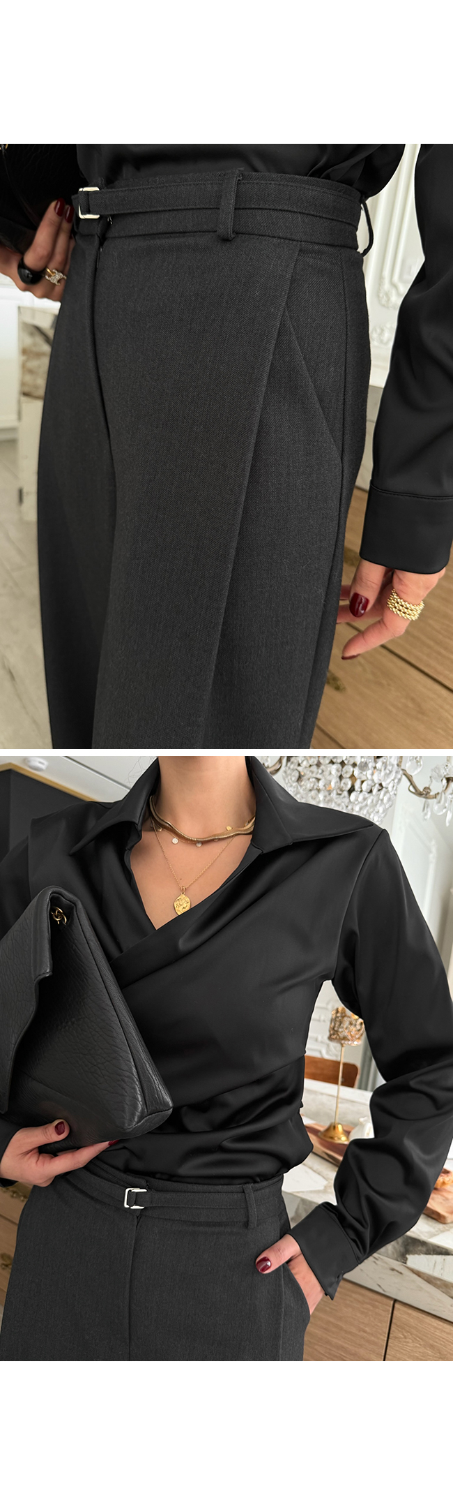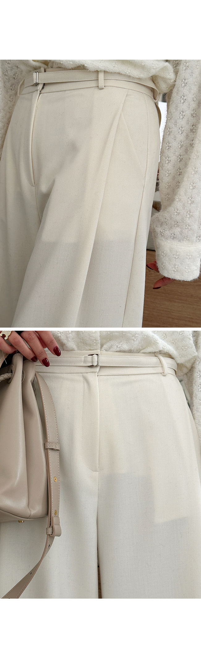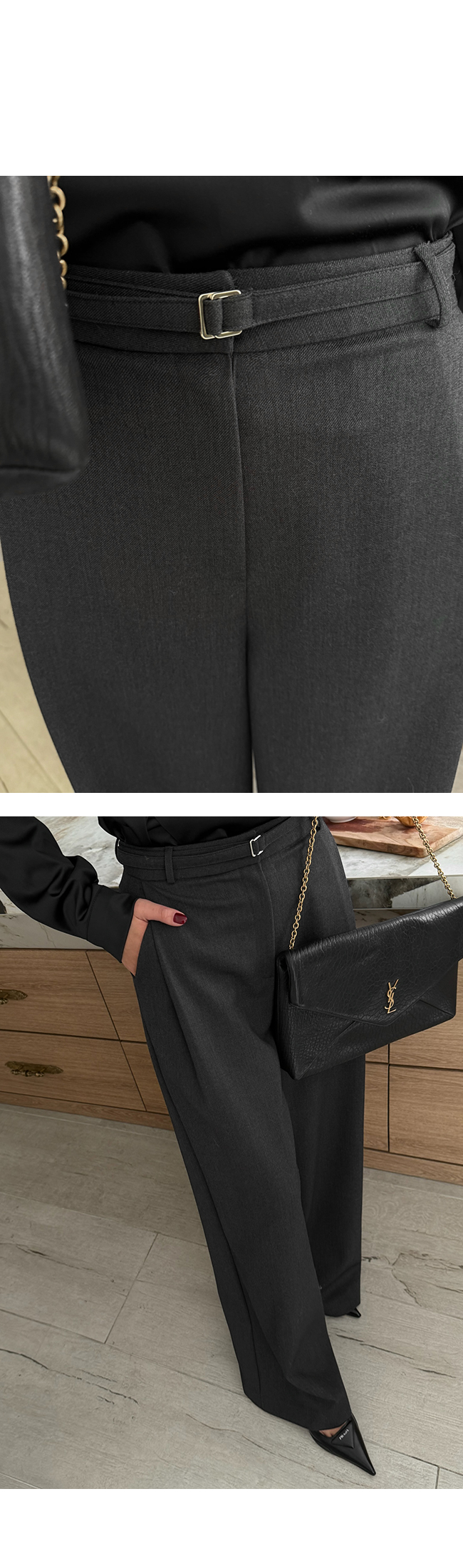 허리선은 깔끔한 일자 라인에 슬림 벨트 고리가 더해져