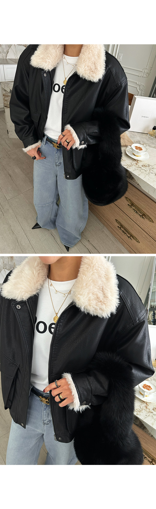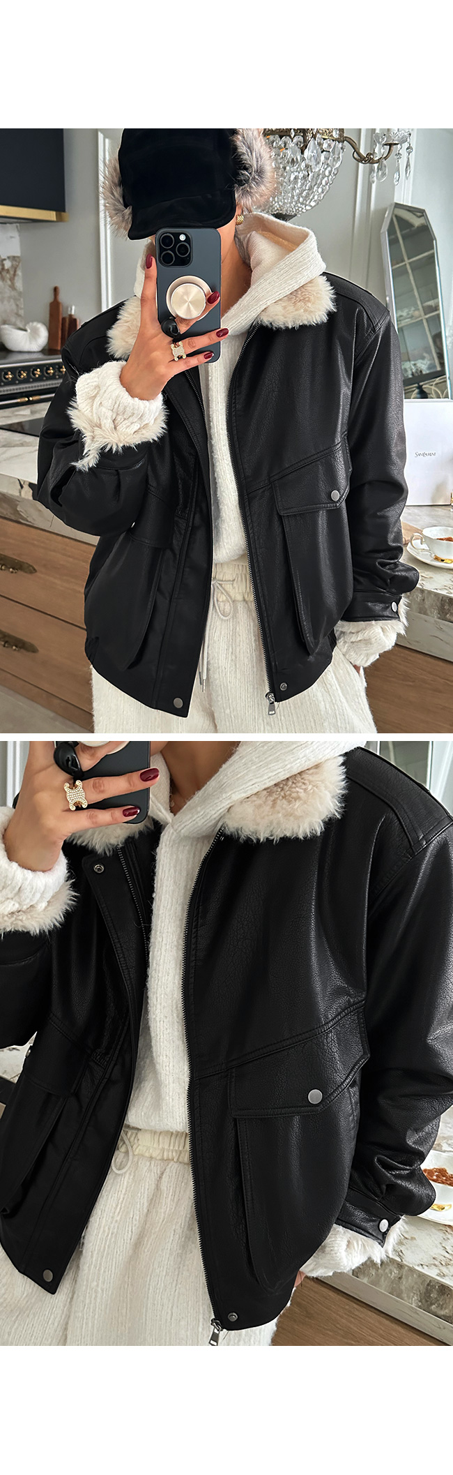 스타일과 보온성을 모두 잡은 안감 퍼 레더 재킷 소개해드려요.