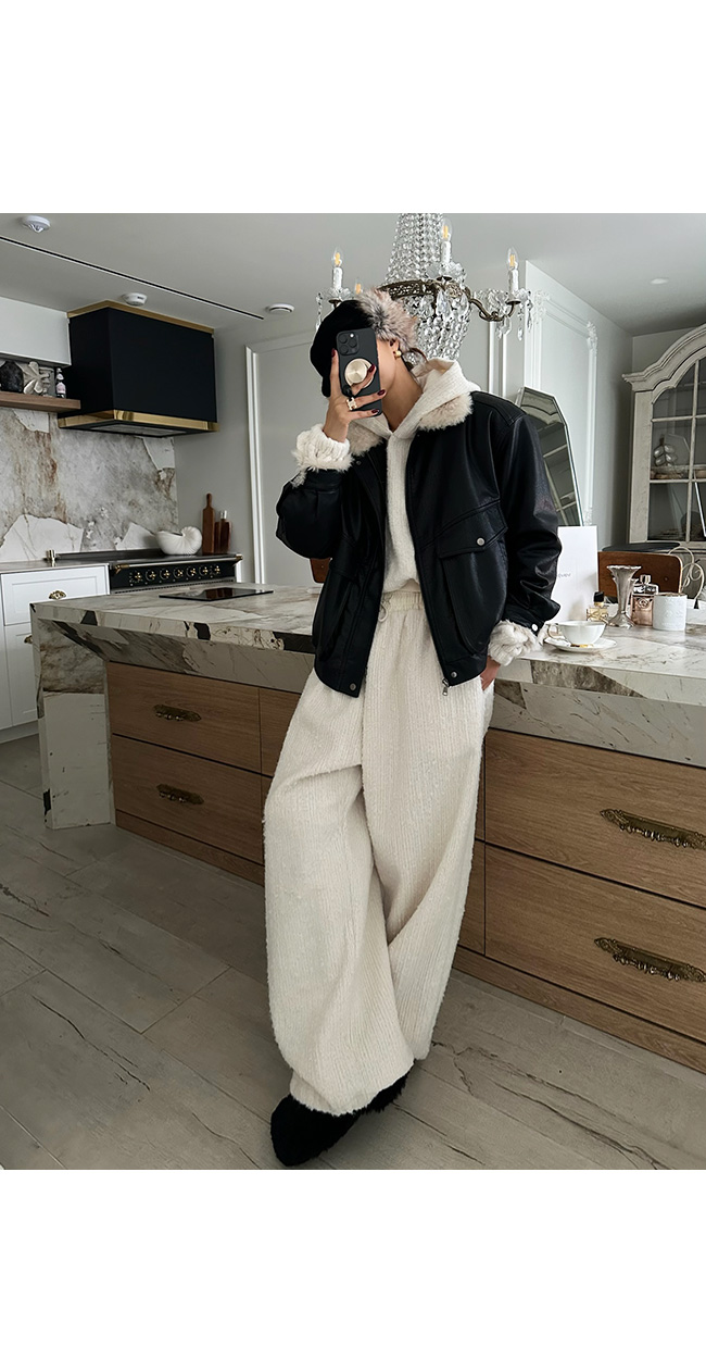 입는 순간 따뜻함이 그대로 전해지는 겨울 무드 팬츠예요.