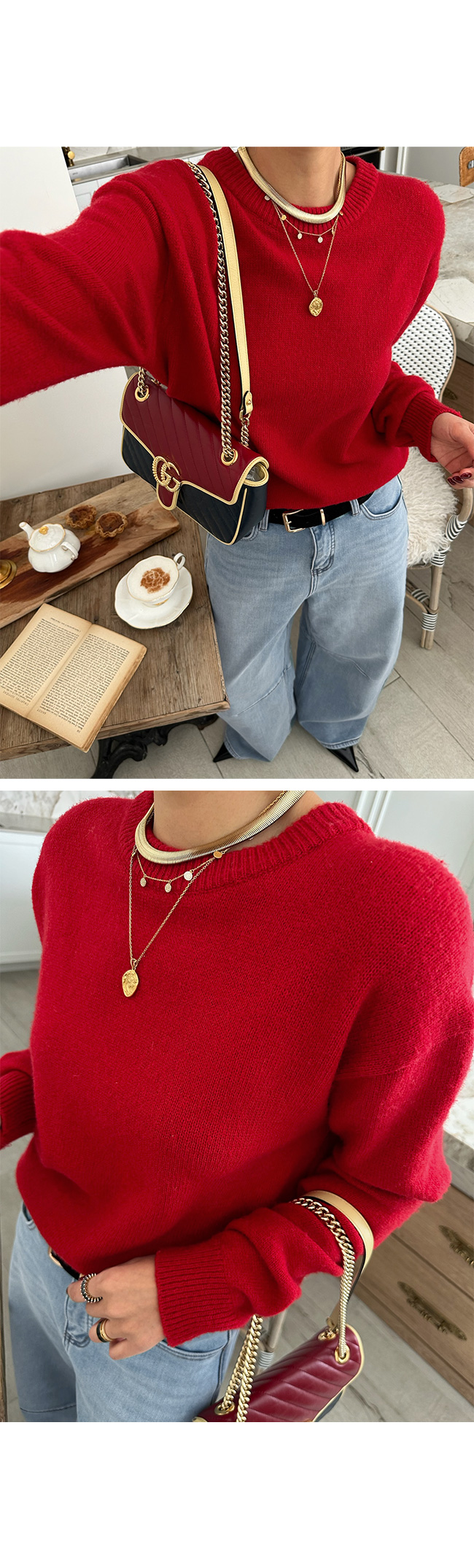 라운드 니트 적극 추천드려요.