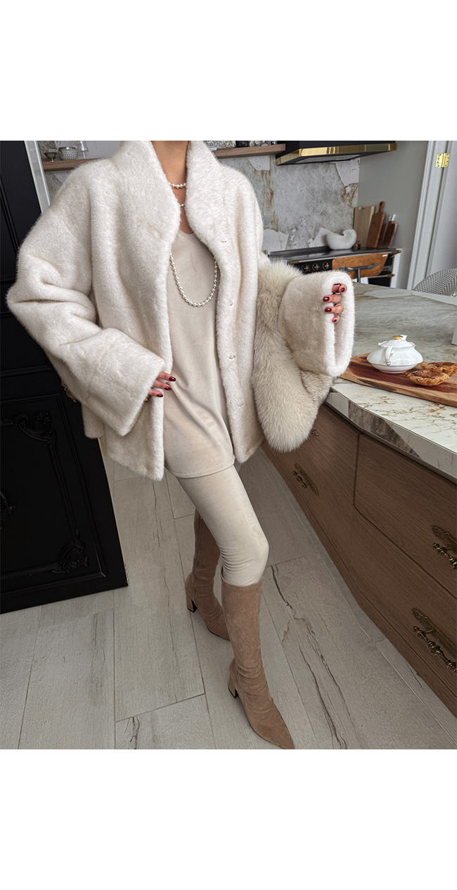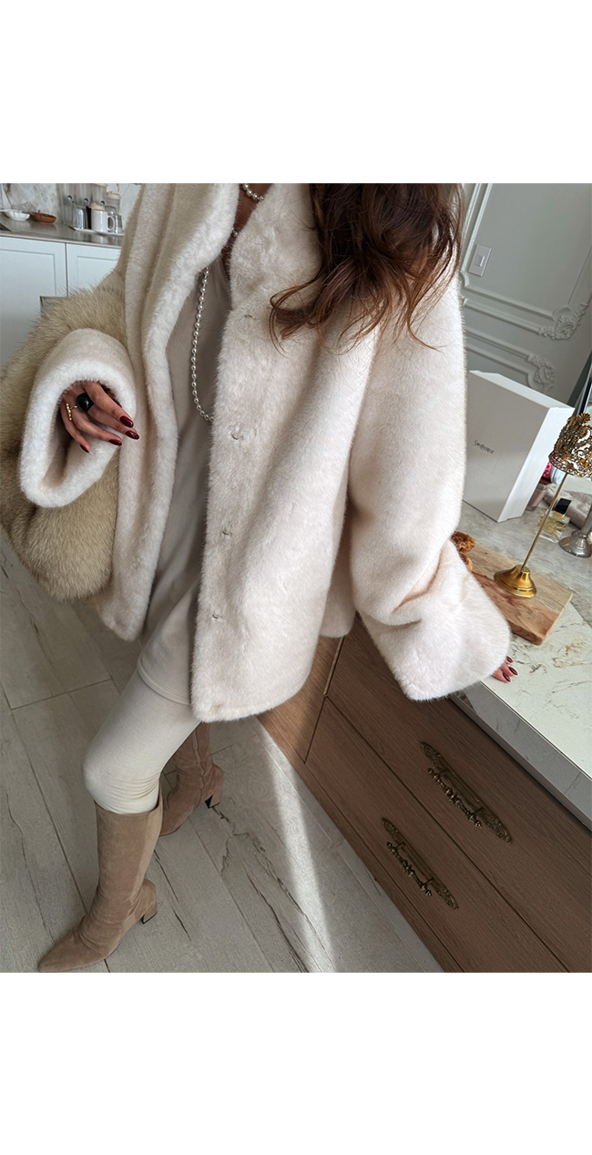 볼륨이 돋보이는 퍼 자켓 소개해드릴게요.