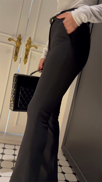 무릎 아래로 자연스럽게 퍼지는 부츠컷 라인이