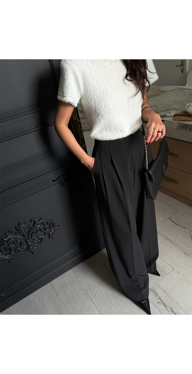 프론트 핀턱 디테일이 더해져 다리 라인을 길고 슬림하게 연출해줘요.