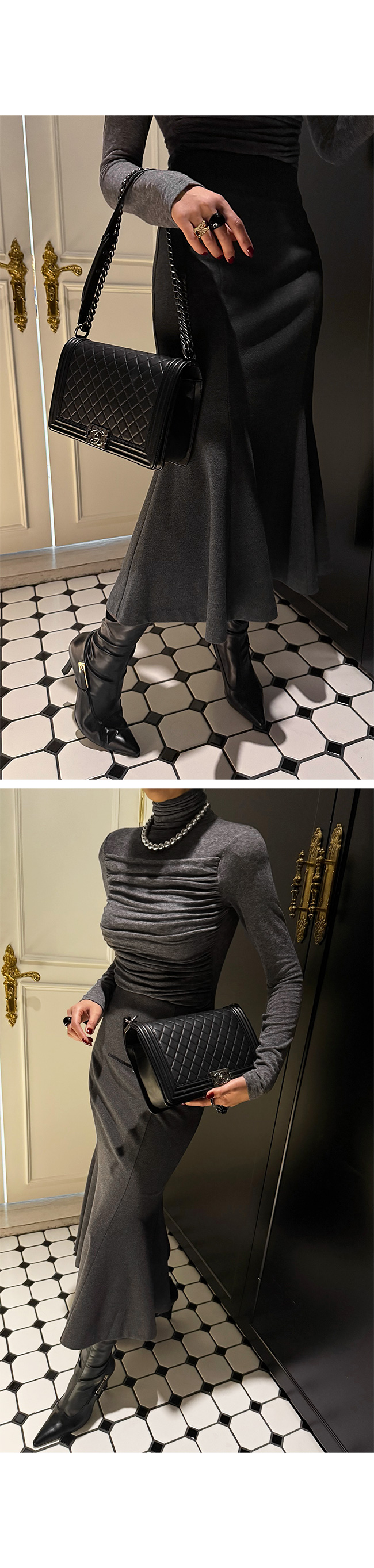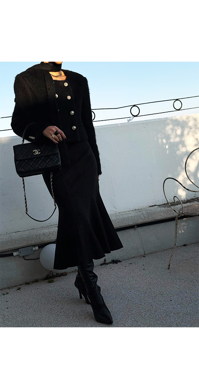 시크한 롱부츠나 포인트 힐과 매치하면
