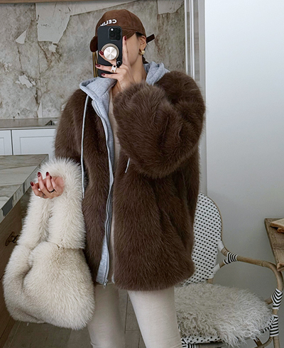 겉감 전체가 풍성하고 윤기 있는 퍼 소재로 제작되어