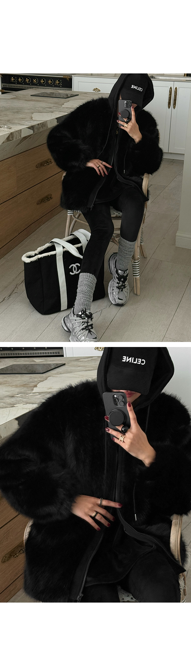 캐주얼한 매력을 더해주어 퍼의 고급스러움과
