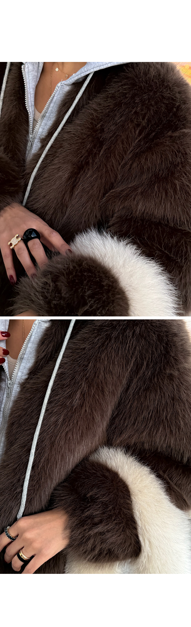 강력 추천드리는 퍼 후드 레이어드 집업이에요!