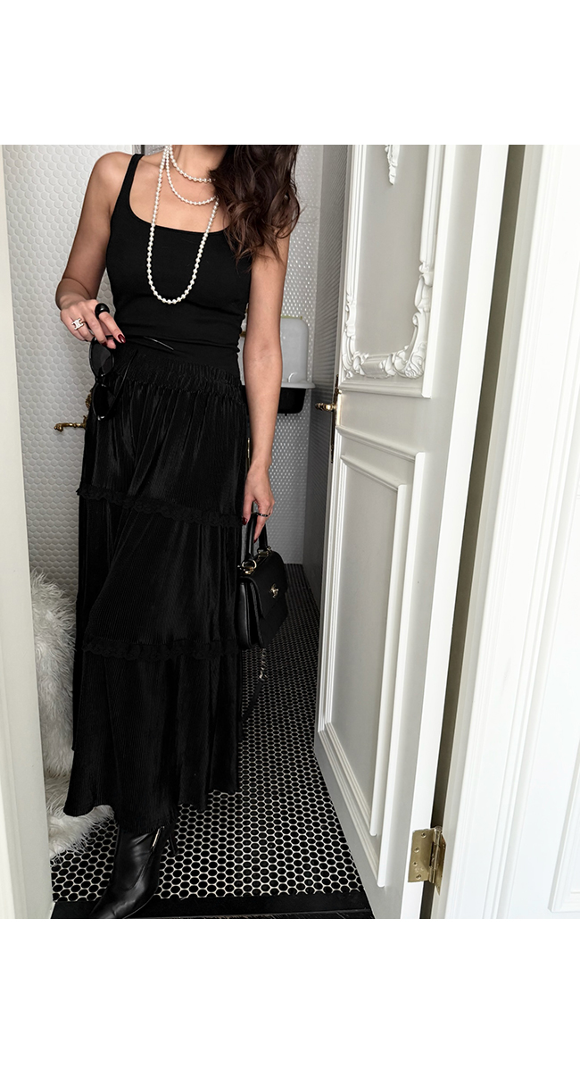 티어드 디테일과 레이스 라인이 은근한 포인트가 되어