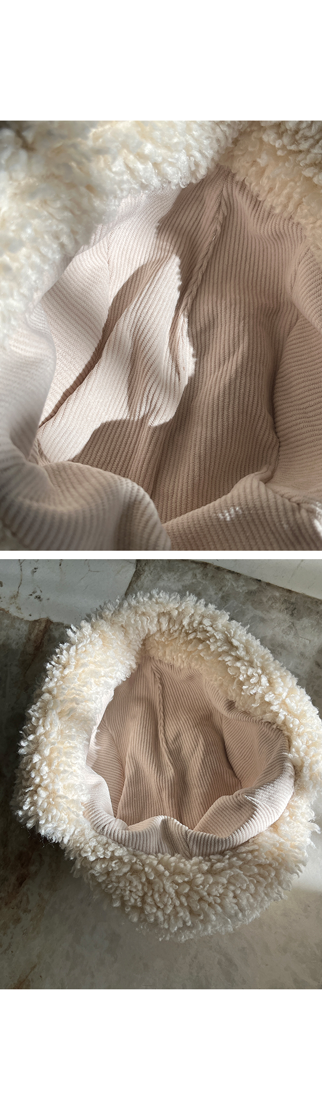 - 안쪽면이 쮸리나 기모가 가공이된 소재감들은 가공 과정에 의해 약간의 먼지가 발생할 수 있으니, 세탁후 입어주세요.