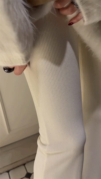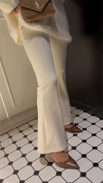 무릎 아래로 자연스럽게 퍼지는 부츠컷 실루엣이