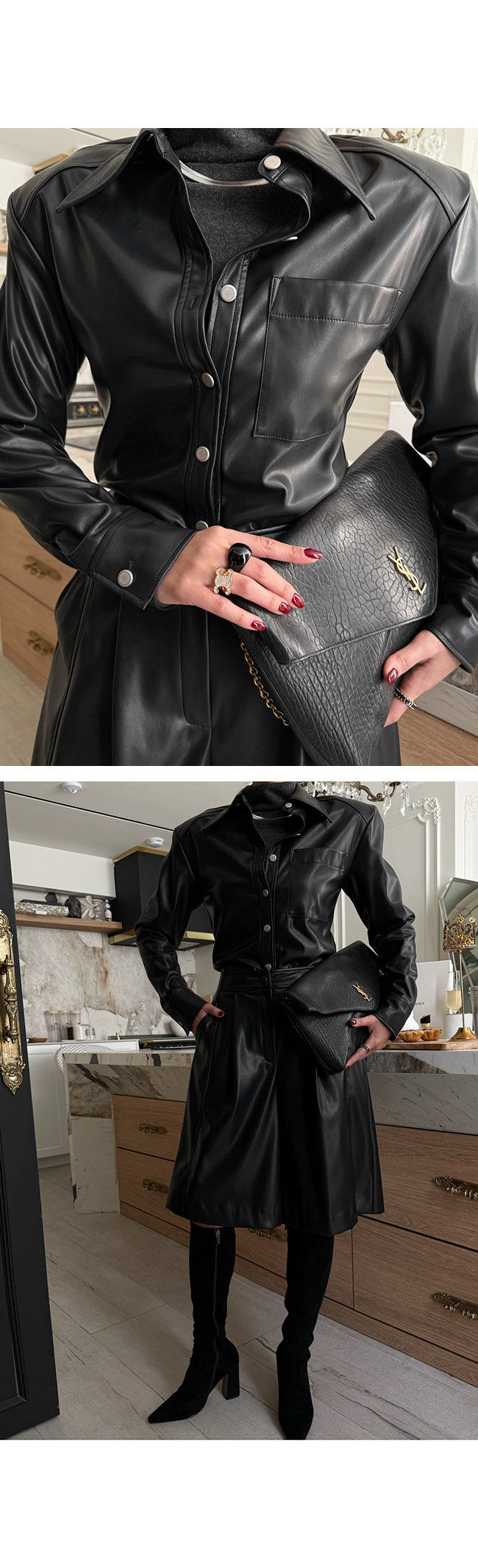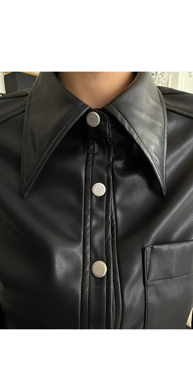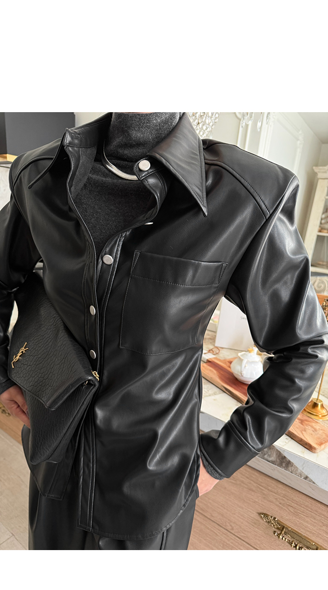 폭넓게 스타일링하기 좋은 레더 셔츠예요.