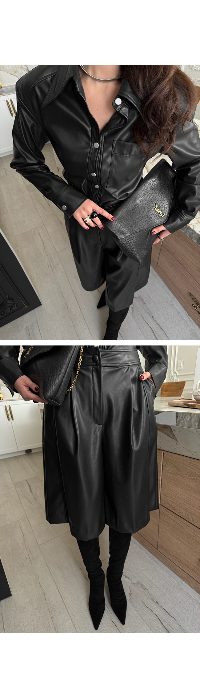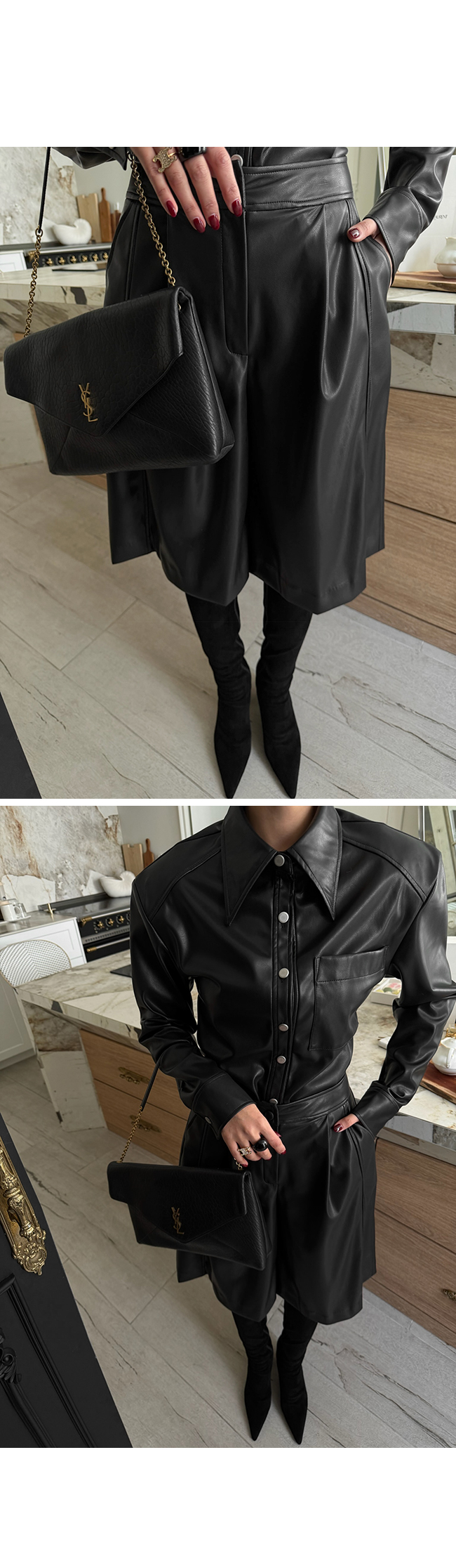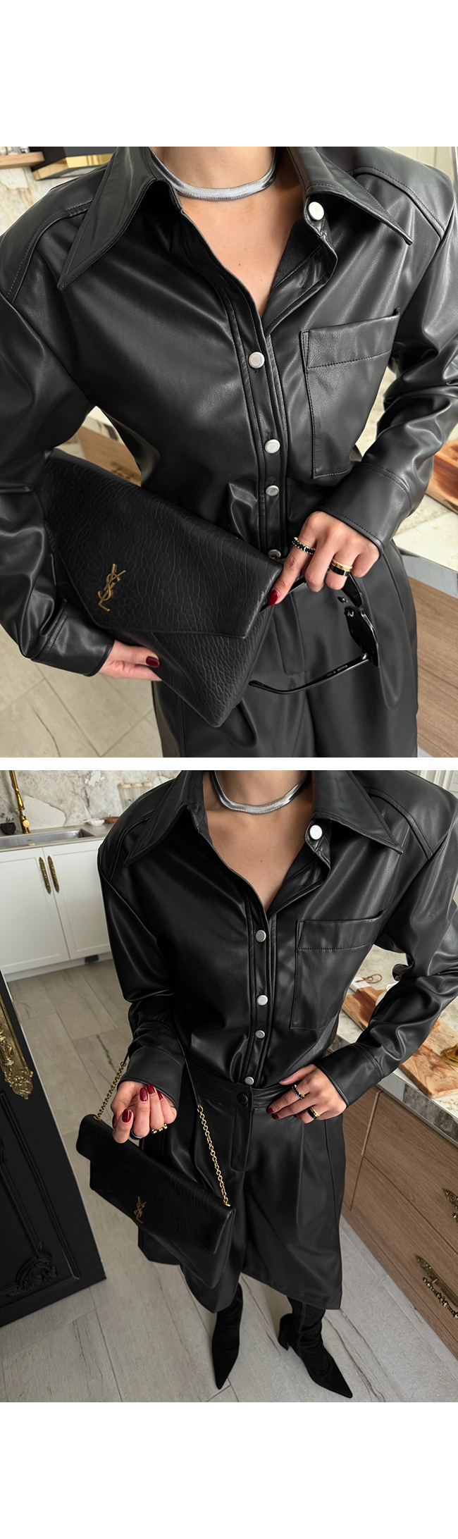 폭넓게 스타일링하기 좋은 레더 셔츠예요.