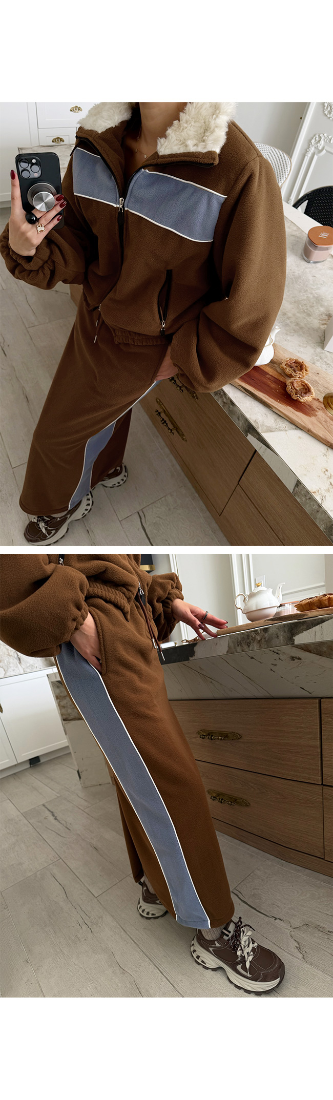 집업과 동일한 플리스 소재로 제작되어