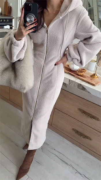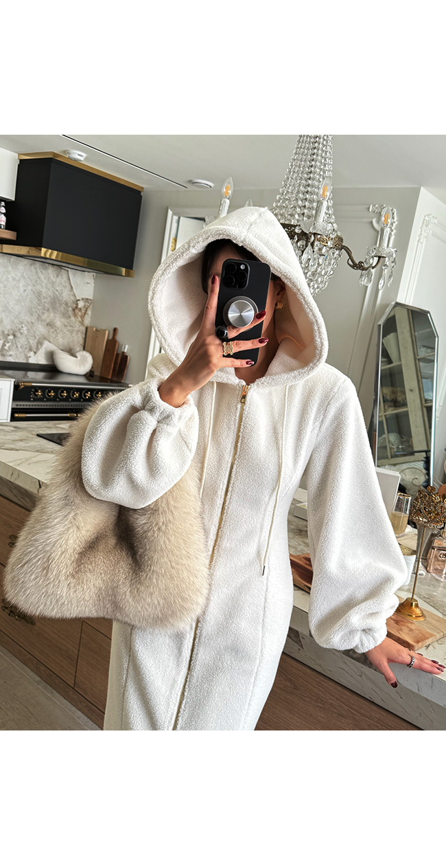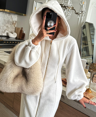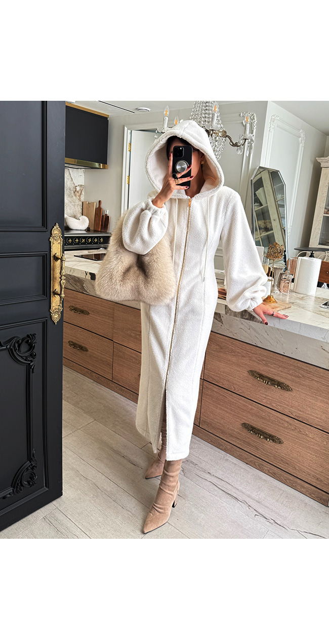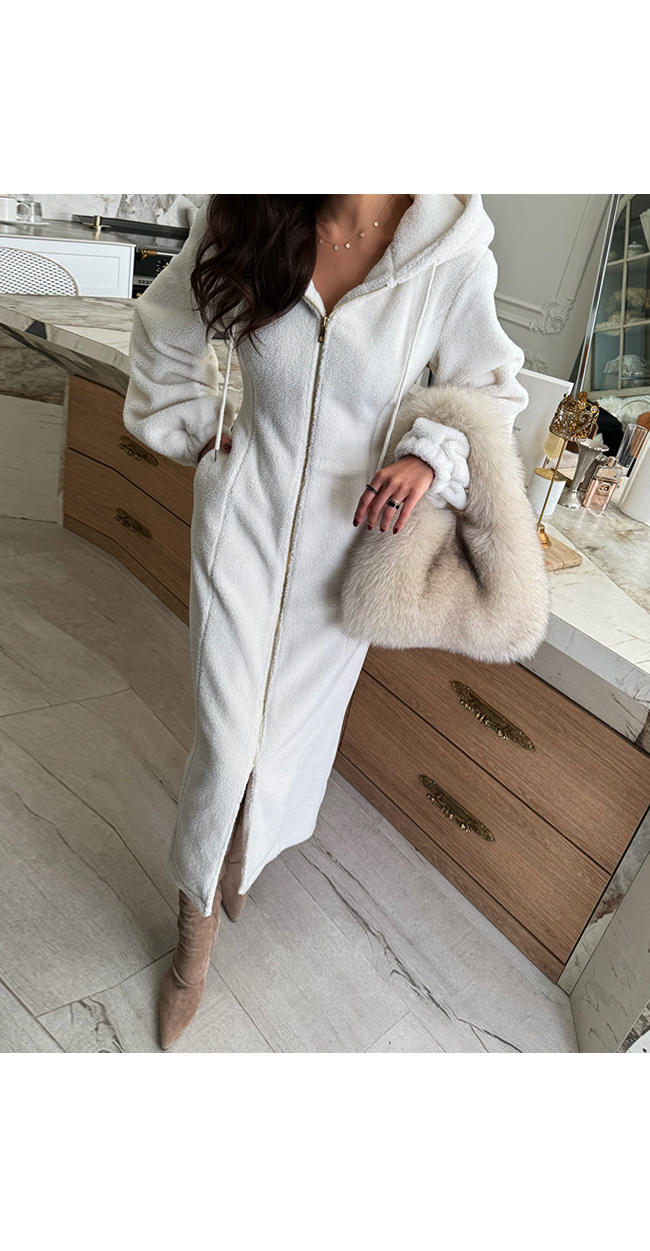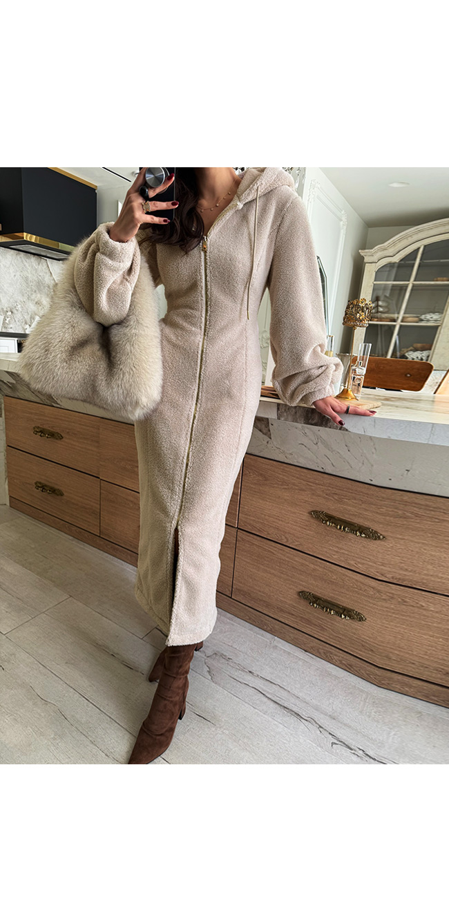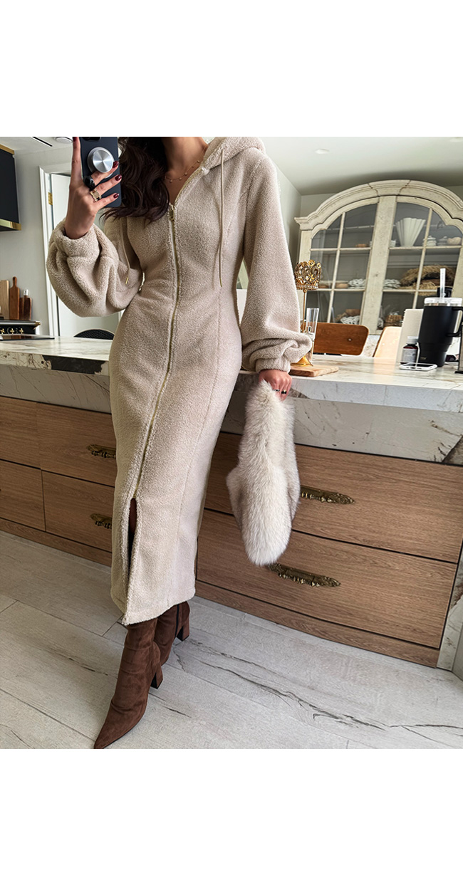 고급스럽게 즐기기 좋은 뽀글이 후드 원피스입니다.