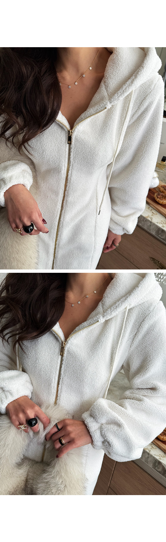 피반크 뽀글이후드집업원피스