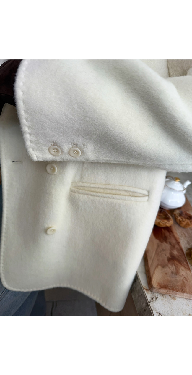 프론트 버튼 여밈과 실용적인 포켓 디테일로