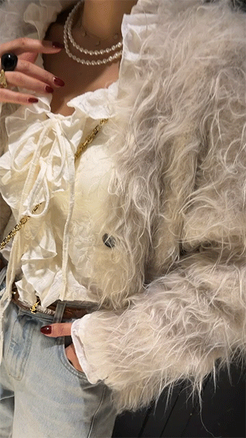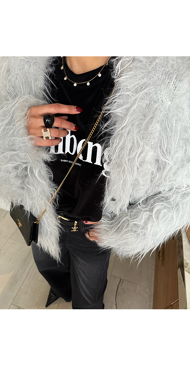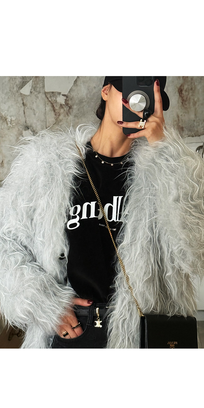 자연스럽게 흐르는 롱 헤어 소재가 포인트로,