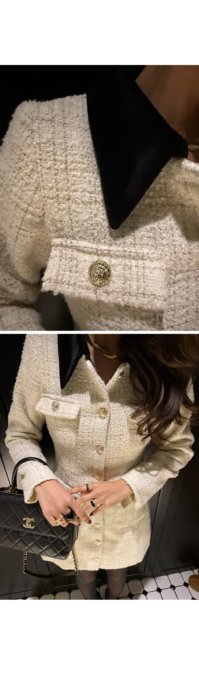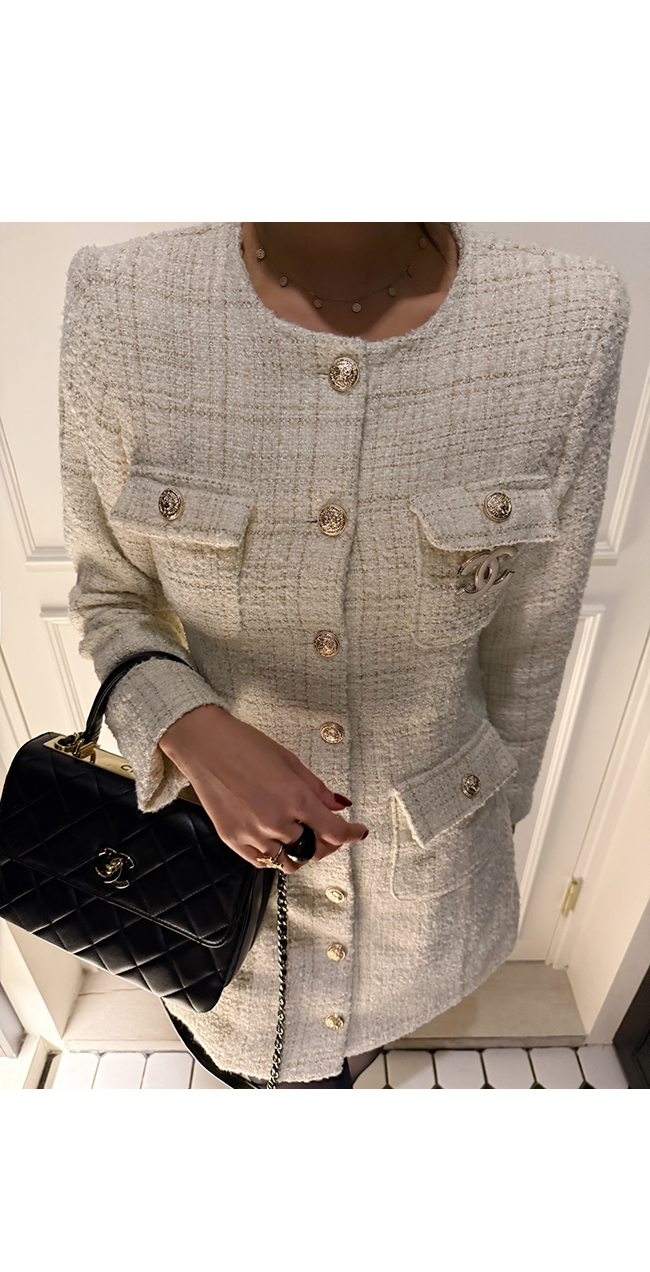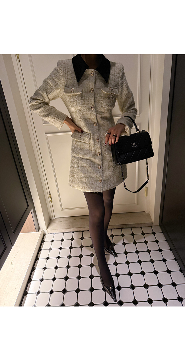 트위드 소재 특유의 우아함을 한층 살려주었고,