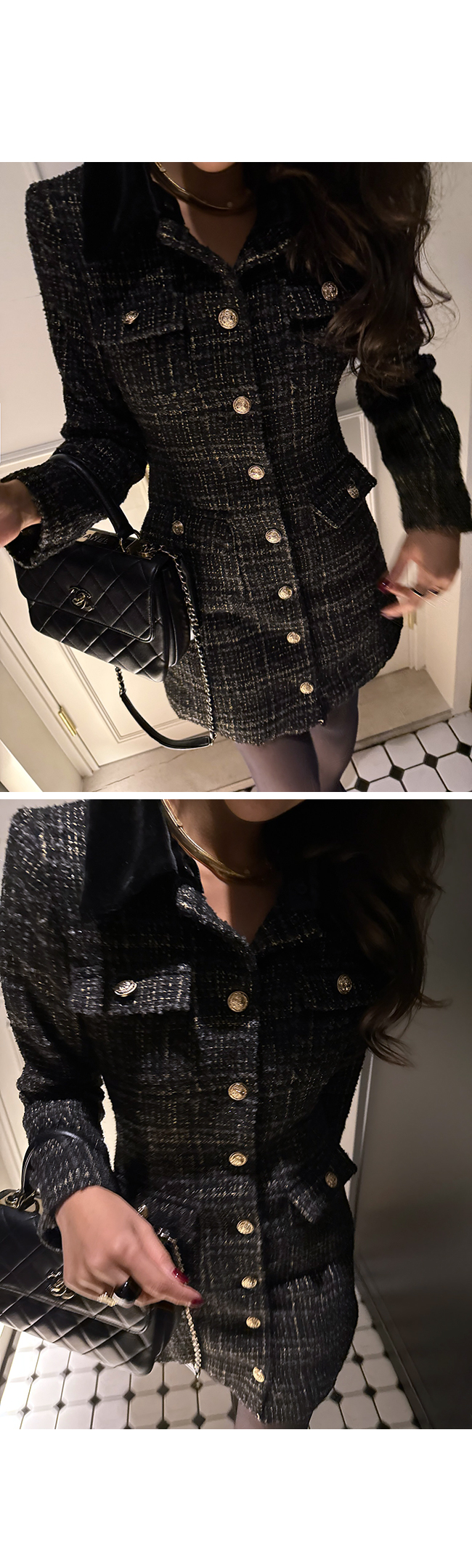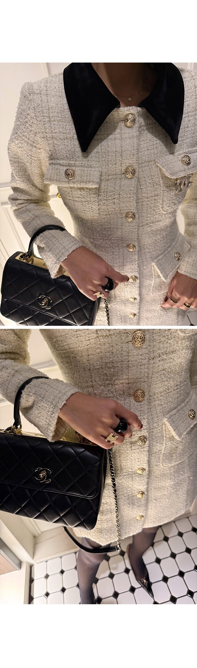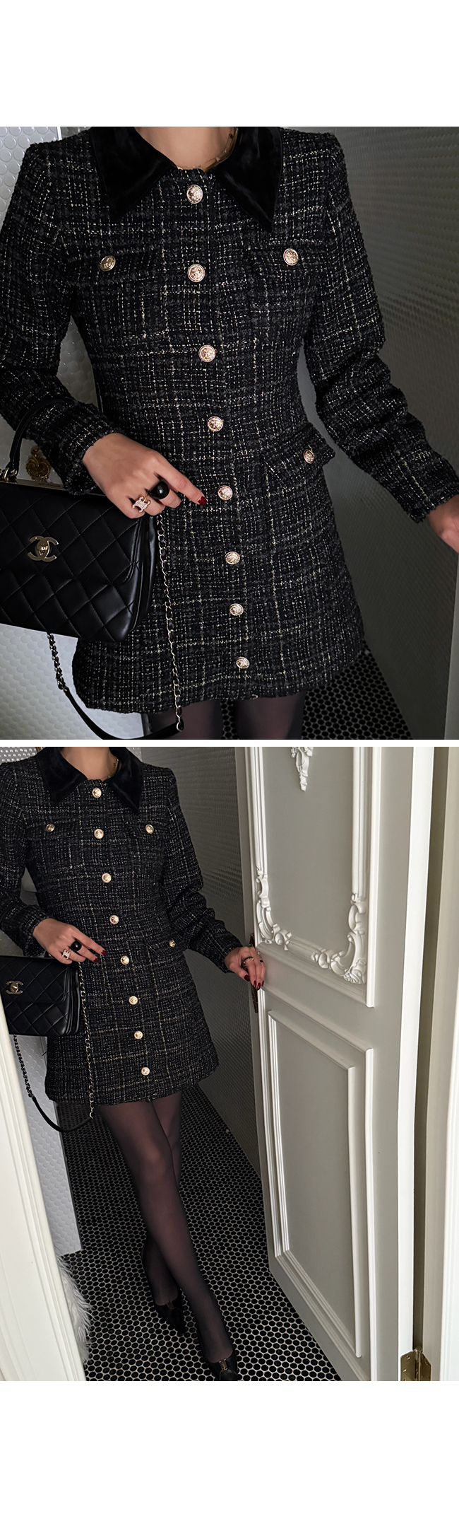 트위드 소재 특유의 우아함을 한층 살려주었고,