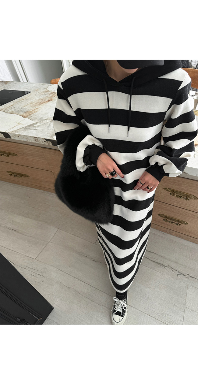 아핀드 기모후드단가라원피스