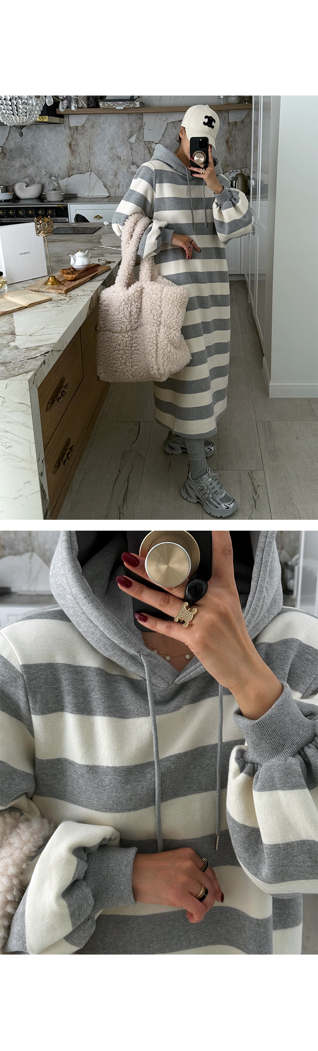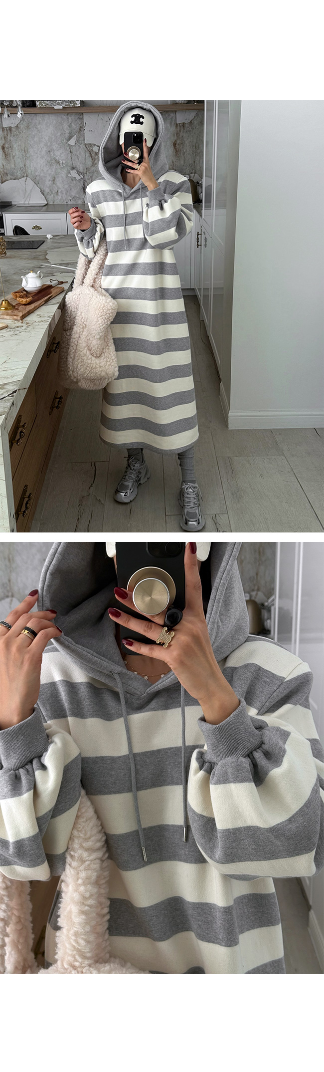 자체제작 기모 후드 단가라 원피스
