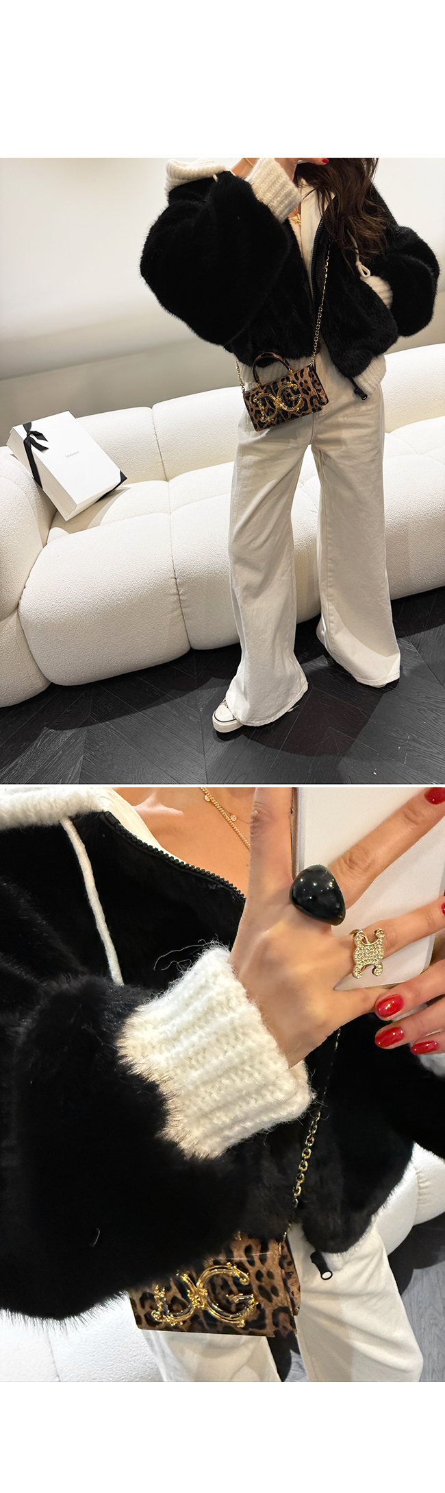 풍성하면서도 부드러운 퍼 소재로 착용했을 때 한눈에