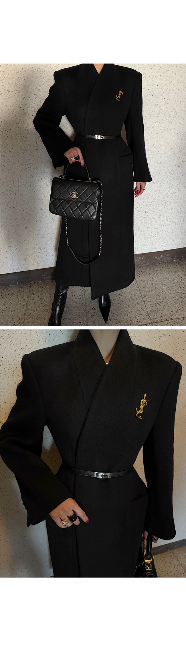 코트와 원피스를 동시에 연상시키는 디자인으로